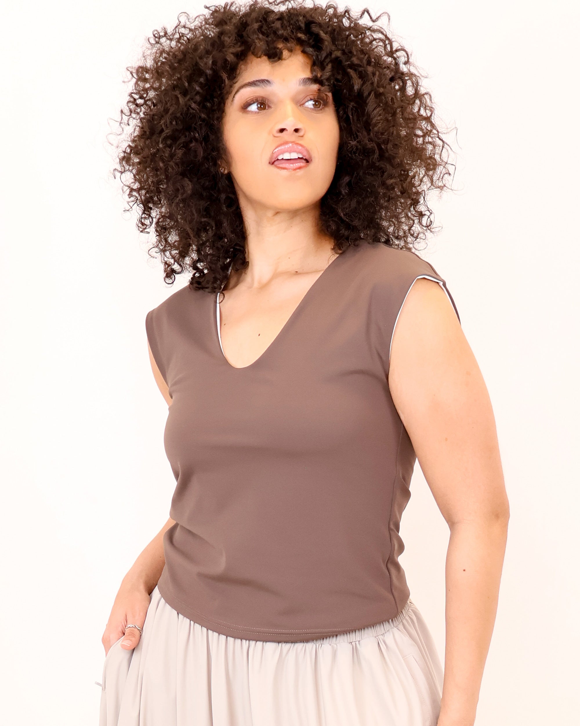 Odyssey Cowl Top in Oxford Toffee