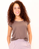 Meet the 2-Way Nomad Tee, a versatile essential designed for life on the move. This lightweight, boxy tee can be worn two ways—style the scoop neckline in the front for a relaxed look or flip it around for an elegant boat neck silhouette. The cap sleeves offer flattering shoulder coverage while maintaining an easy, effortless feel. Comfortable, breathable, and endlessly adaptable, the Nomad Tee is the elevated basic you'll reach for wherever your travels take you.