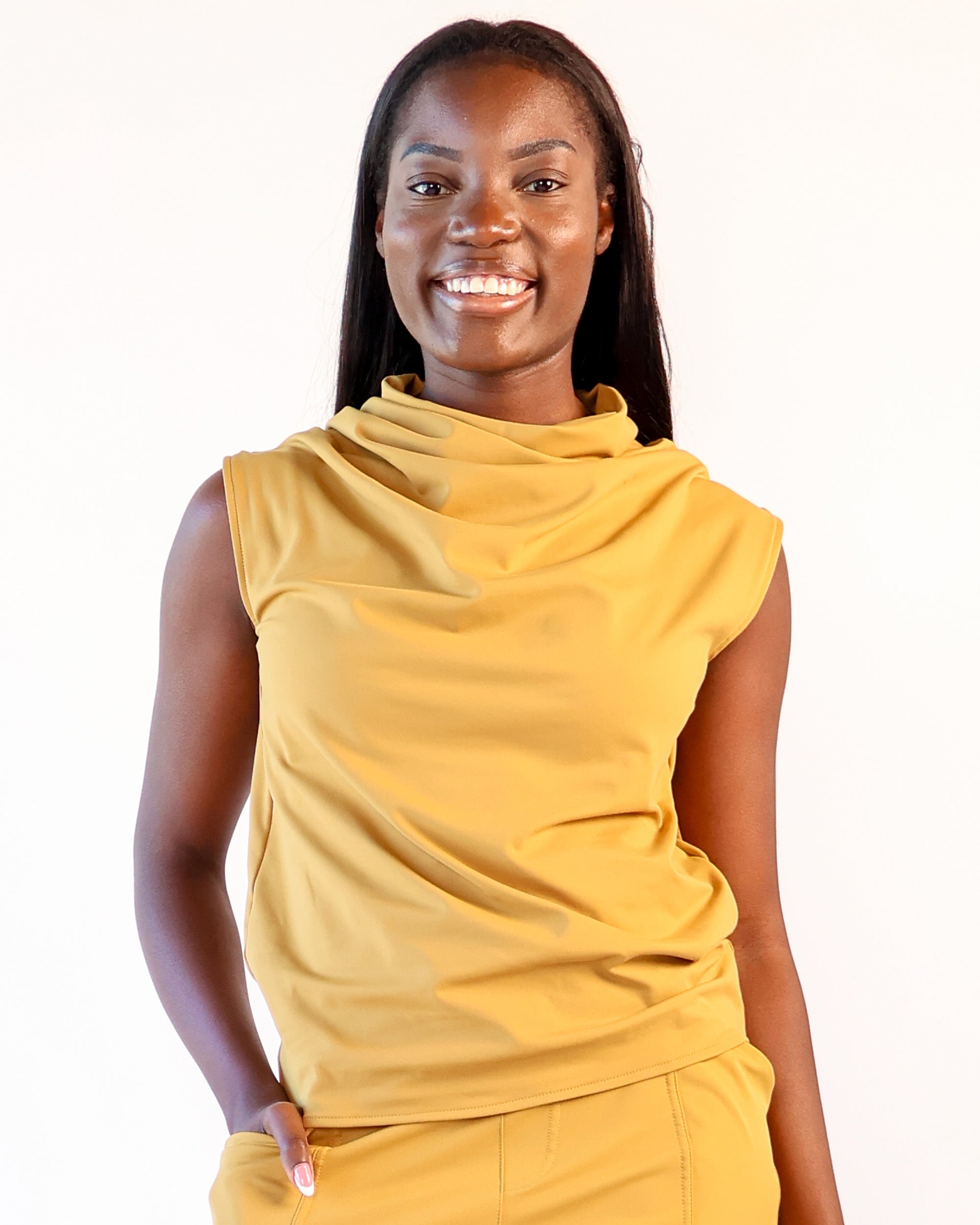 Tuck it into your favorite jeans for a casual look, or wear it under a blazer at the office. This Elevated Cowl Tank will be your capsule wardrobe essential.
