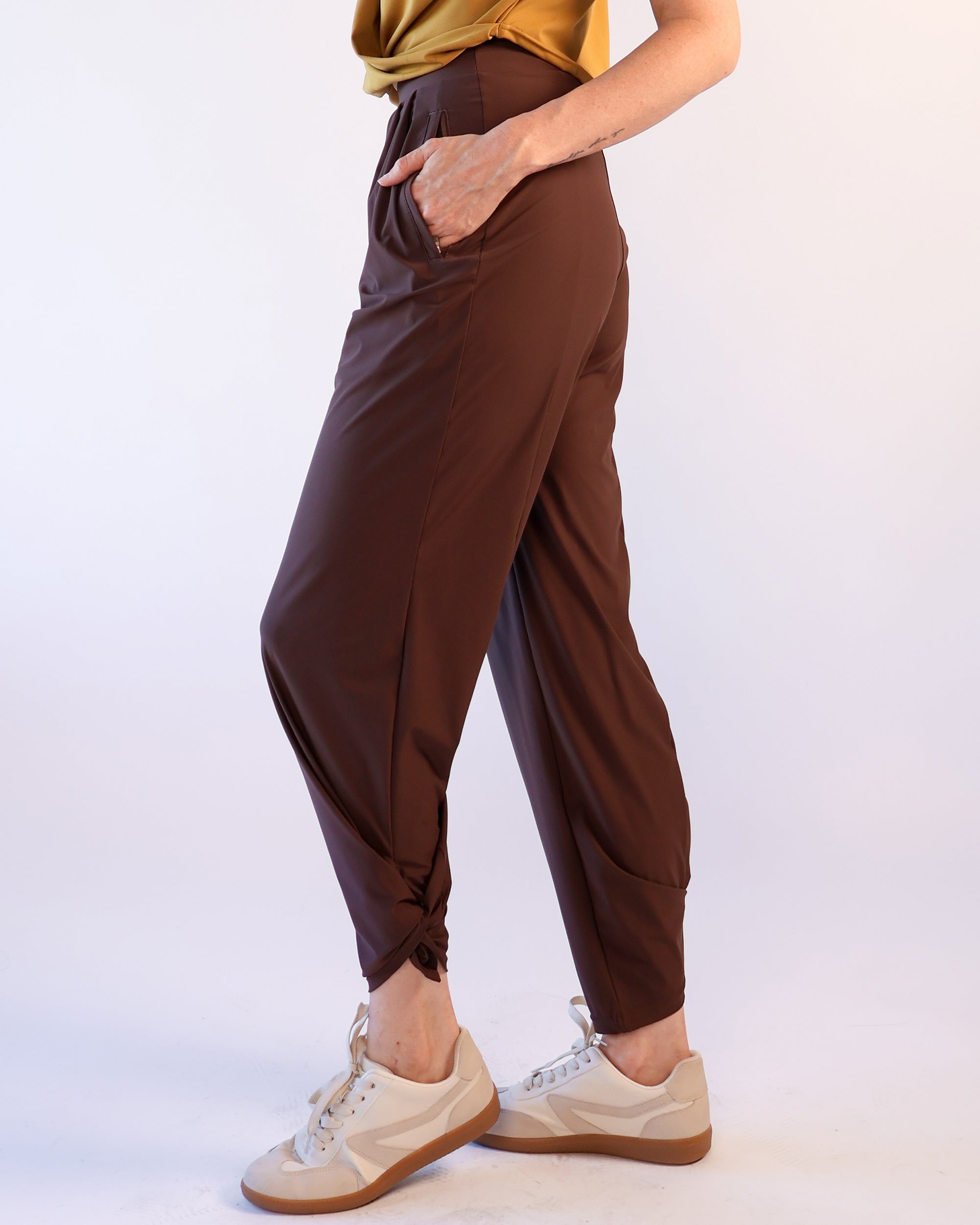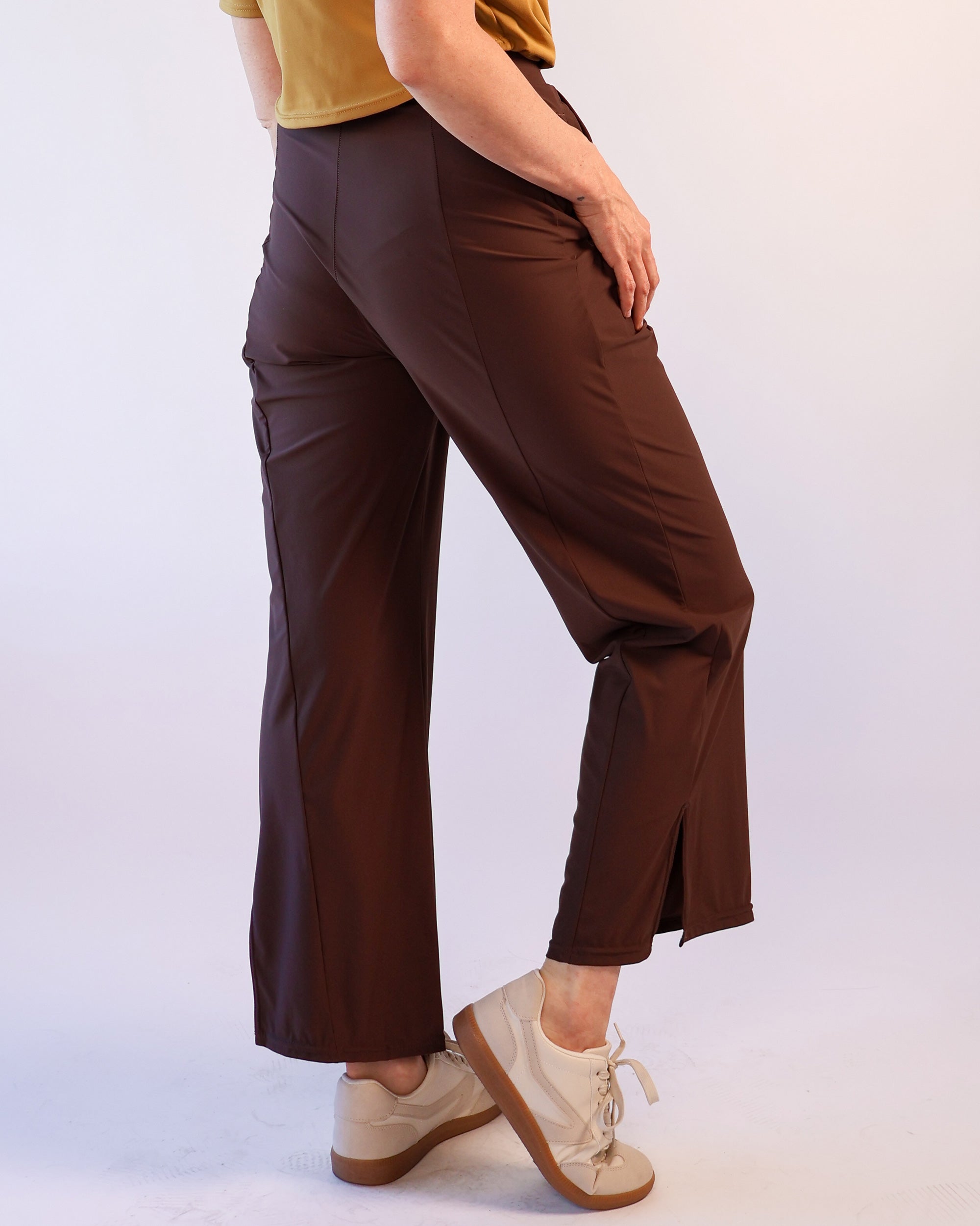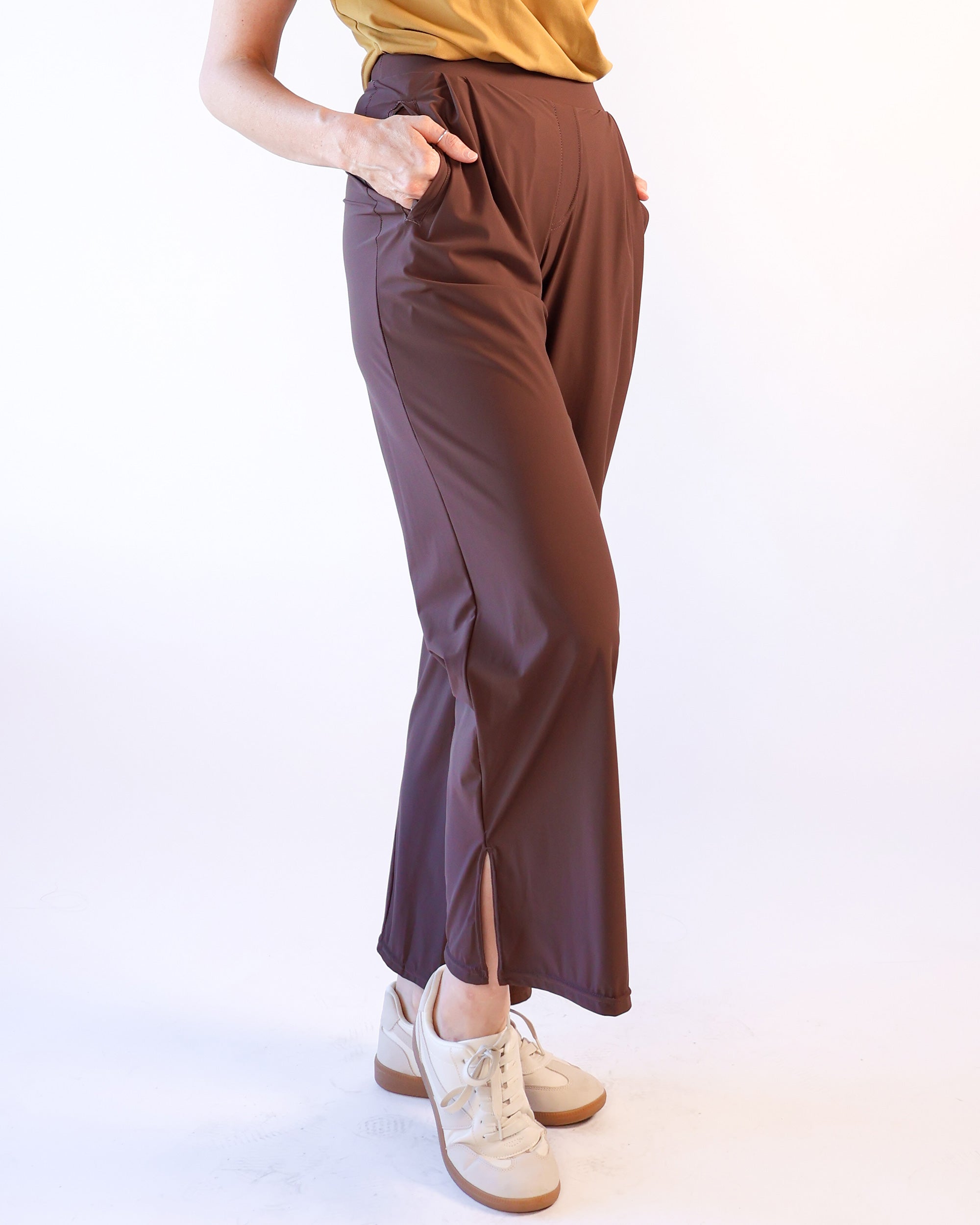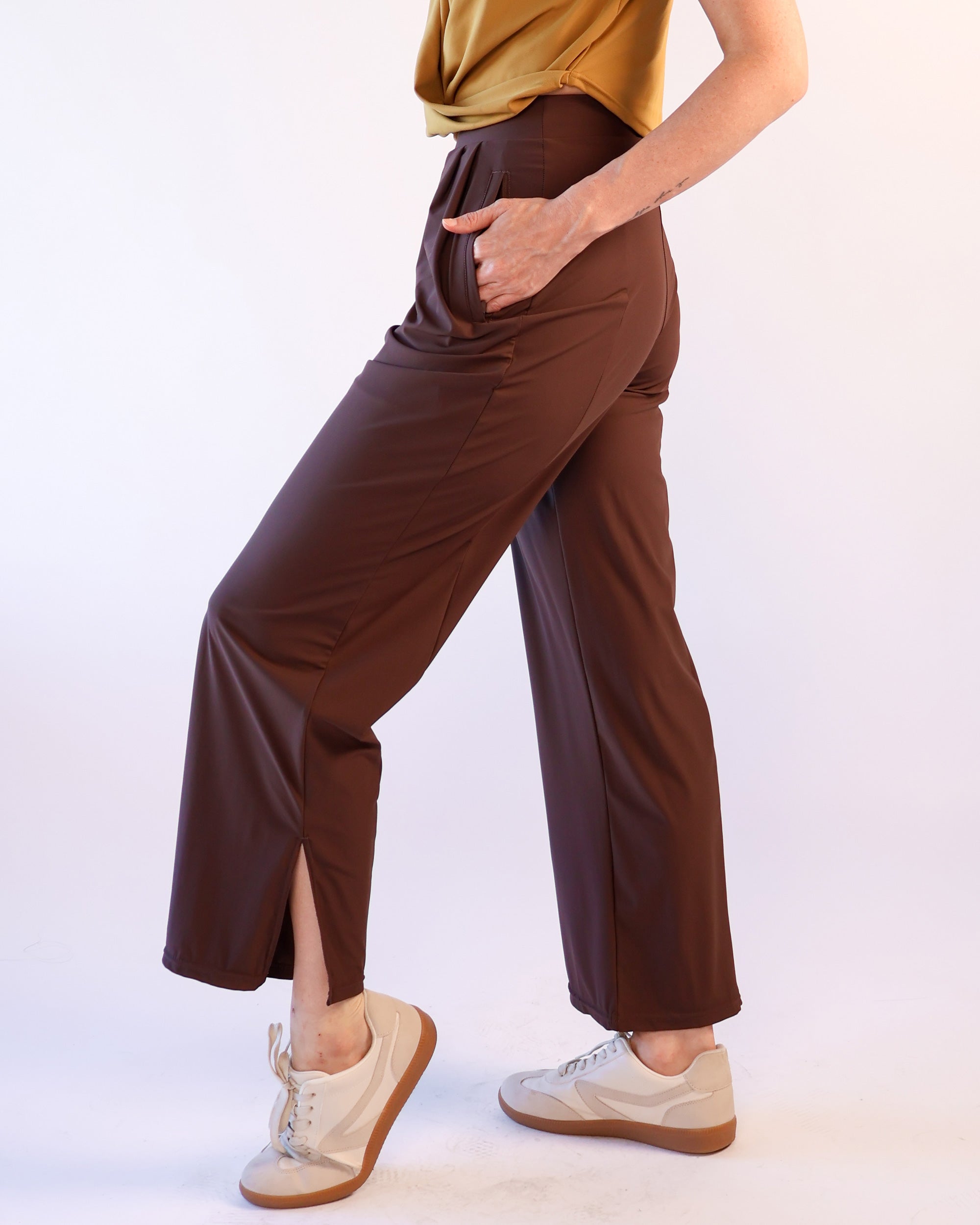 Inspired by our best-selling Roam Trouser, the First Class Trouser delivers first-class comfort and effortless polish. Crafted from our lightweight Nomad Knit fabric with a subtle sheen. The front zipper pockets make sure your items are secure, the double front pleats create a refined drape, while the elastic waistband provides just the right amount of support for wearing all day long. A side-slit hem adds freedom of movement and can be tied for a more casual, tapered look. Whether you’re boarding a flight or stepping into a new city, this trouser moves with you in easy elegance.