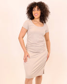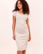 Say hello to your new travel staple: the Packable Roam T-Shirt Dress. With its ruched side seams, scoop t-shirt neckline, & midi length, this dress is ideal for jet-setting. Pair it with sneakers for a day of sight-seeing or dress it up with heels for an evening out. Wherever you go, this dress is ready to roam with you.