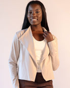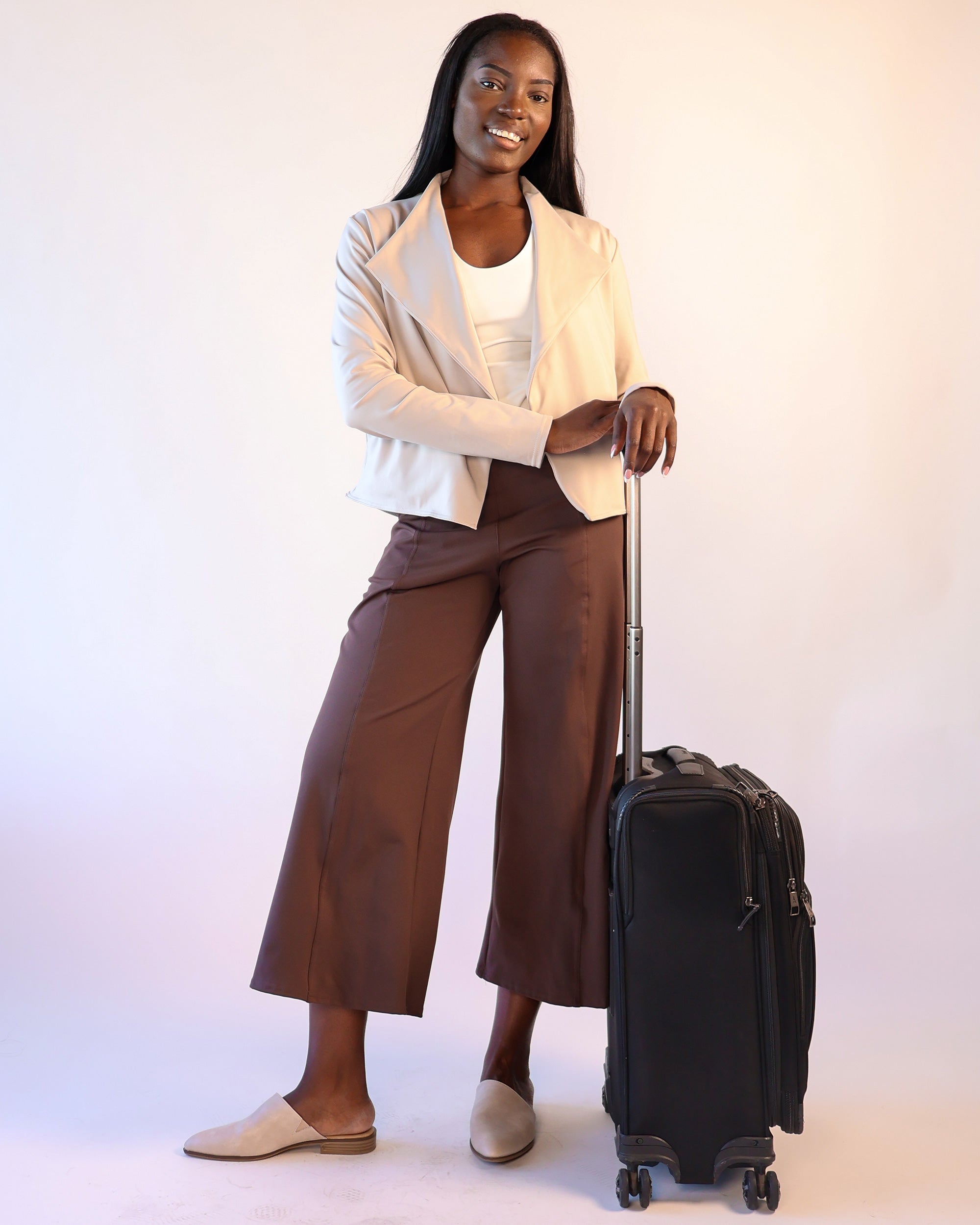 The Runway Blazer was made for women who want to look elegant and polished, while prioritizing comfort. A relaxed blend of a classic blazer and a motorcycle jacket, its the perfect piece to go from in flight to city streets. Designed with an oversized lapel, zipper pockets, a slightly cropped hem that hits right at the hipbone, and long sleeves to invite a casual scrunch at the wrist for an effortlessly styled look. Comfortable, thicker material, versatile, and endlessly chic—this is your go-to layer for every trip.