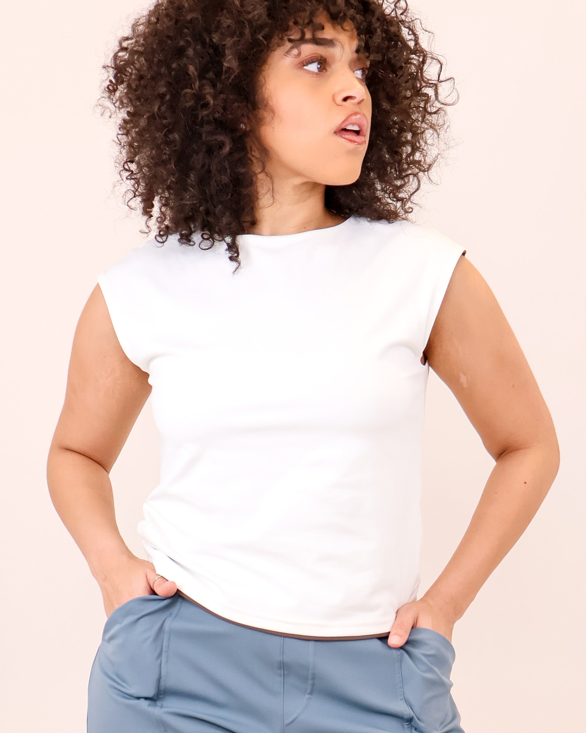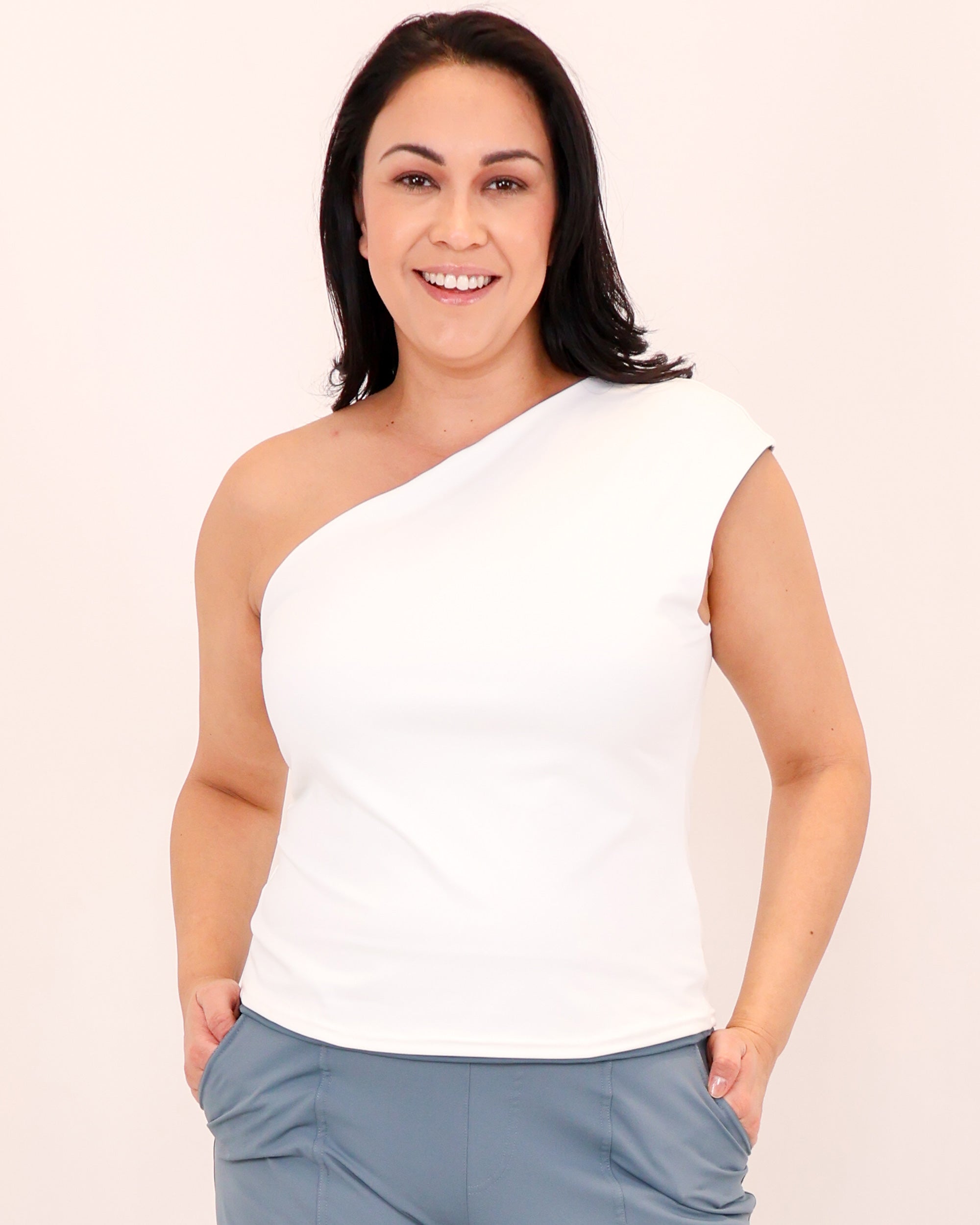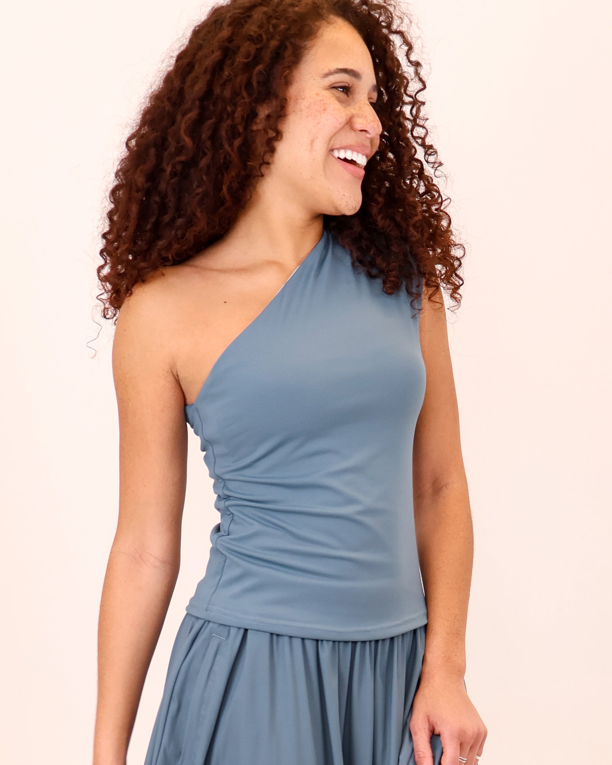 2-Way One Shoulder Tank in San José Storm & Kenai White
