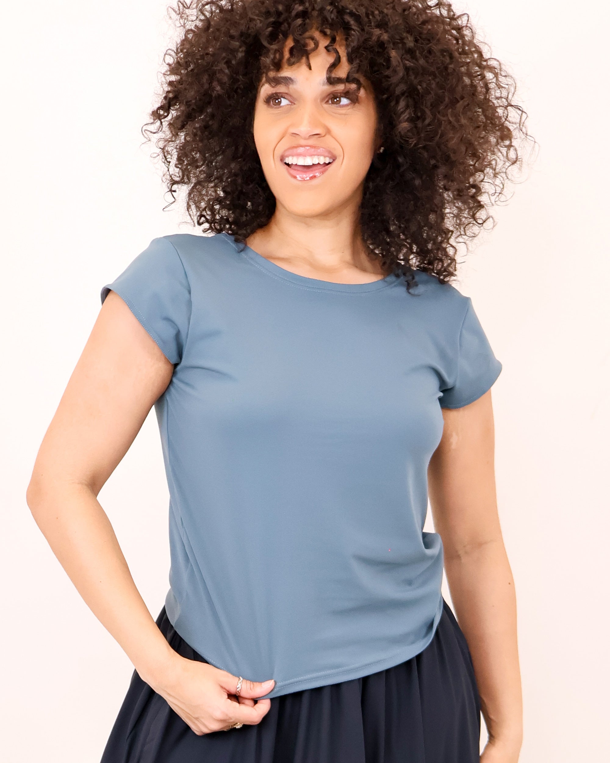 4-Way Square Neck Tee in San José Storm & Kenai White