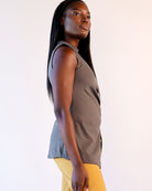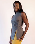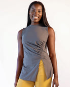 Step up your travel wardrobe with the Essential Wander Tank, featuring an asymmetrical ruched design that beautifully gathers at the waist for a flattering, contoured fit. With a stylish split on the left side, you’ll have easy access to pockets, while the extended hem offers full coverage. Its elegant crew neckline makes this tank a versatile layering piece, perfect for pairing with everything from joggers to skirts.