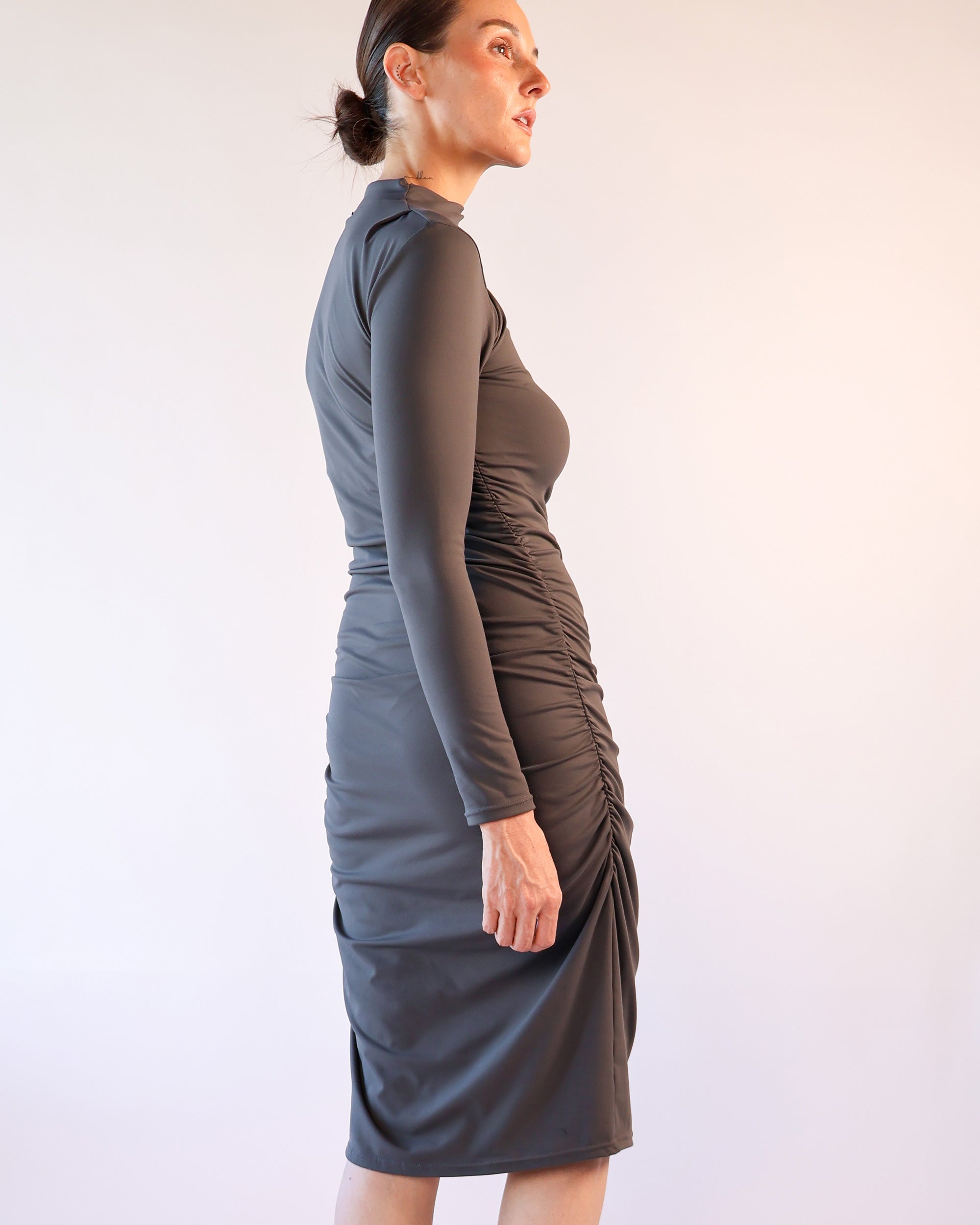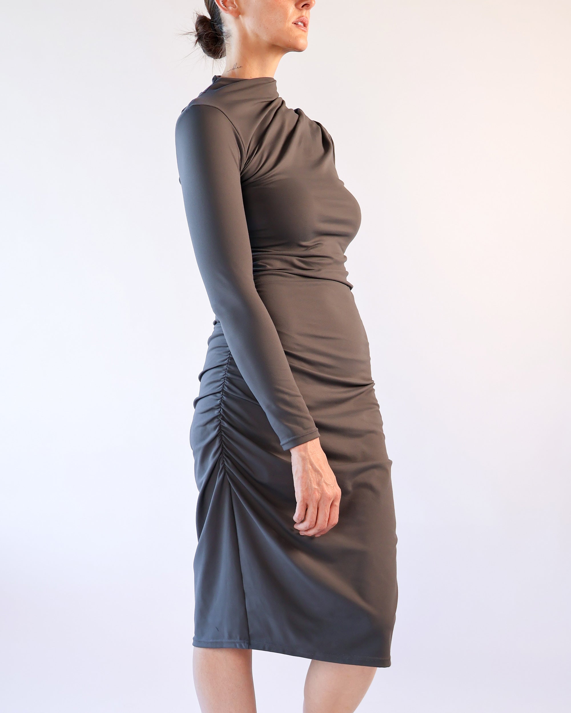 Odyssey Cowl Dress in Stockholm Slate