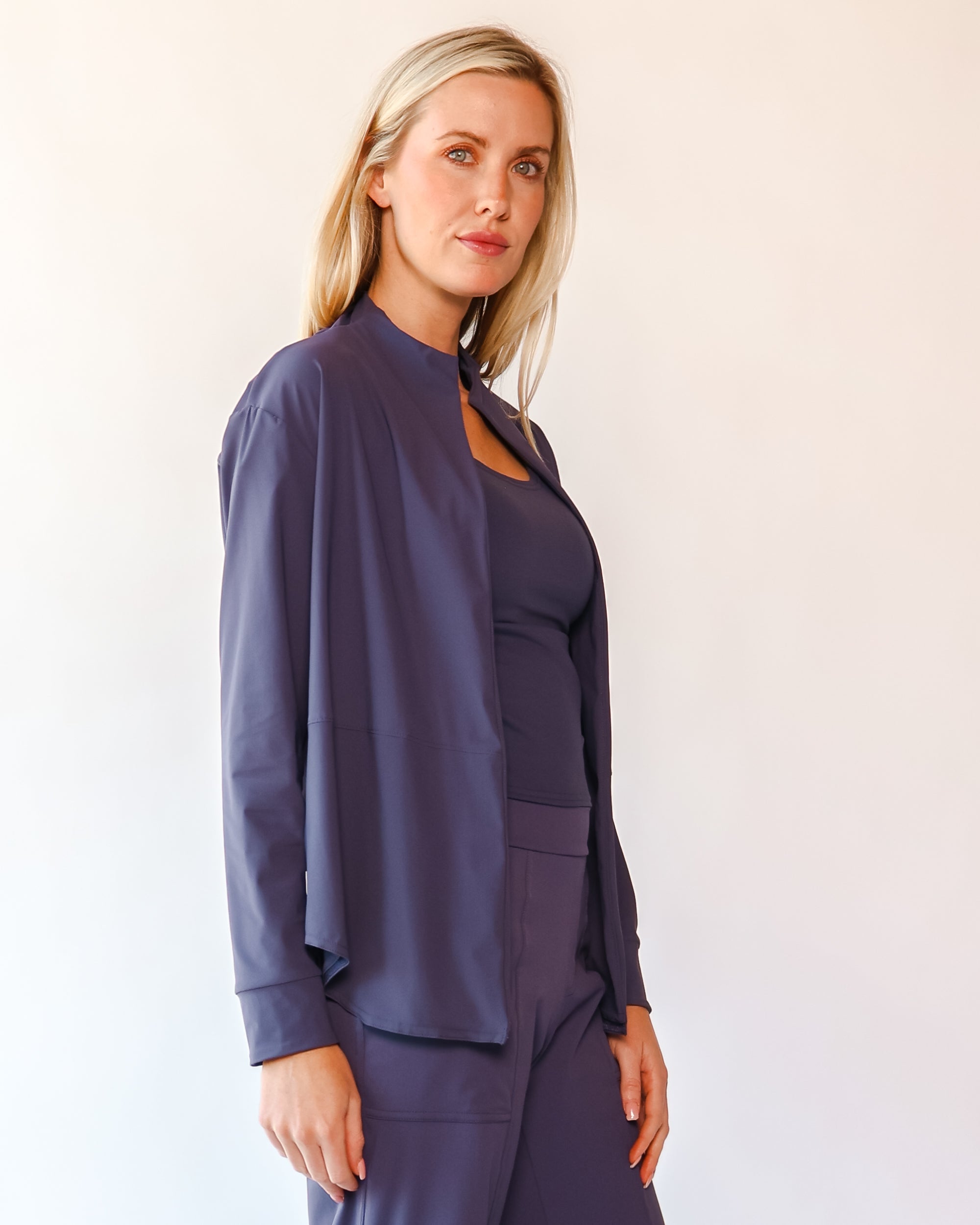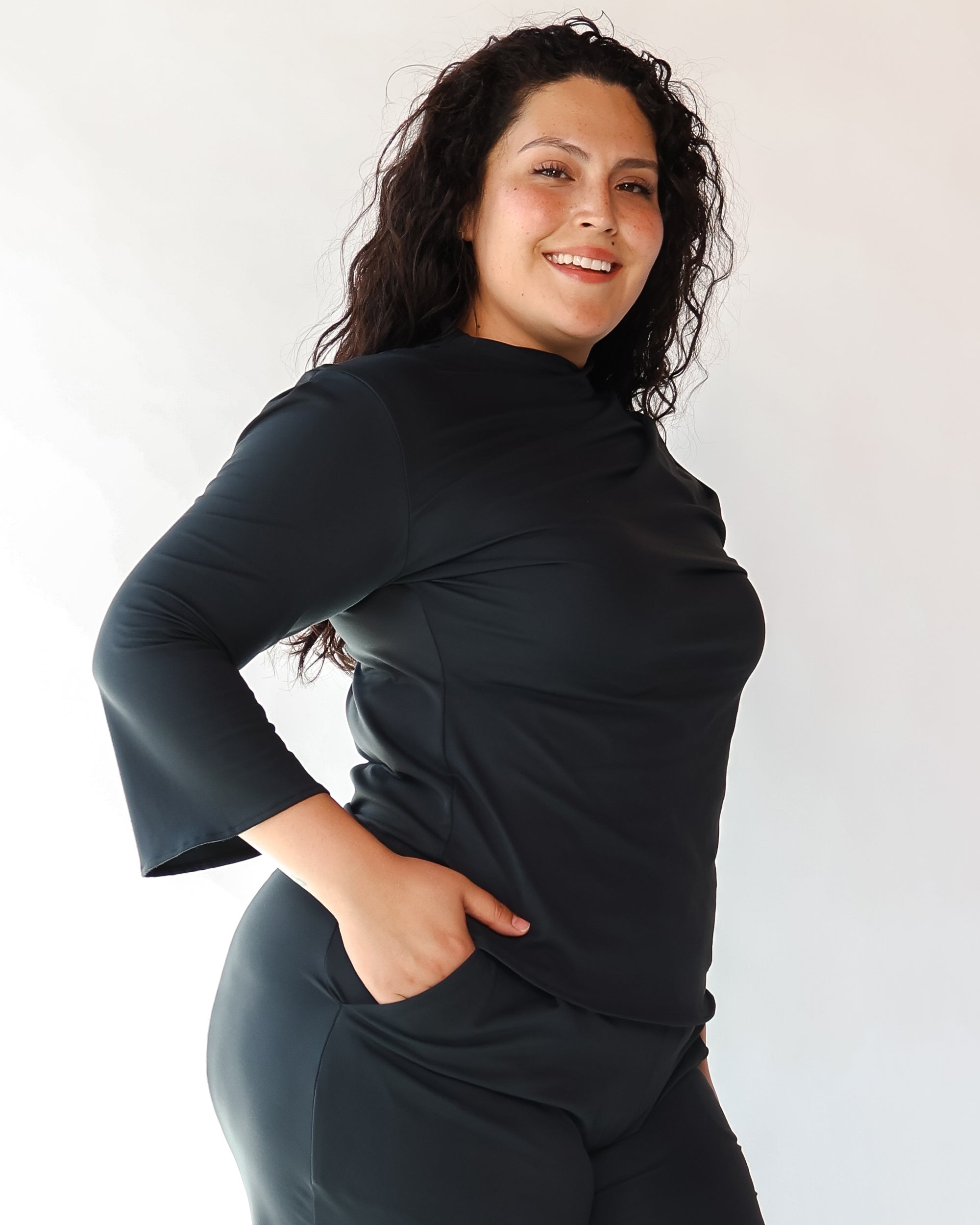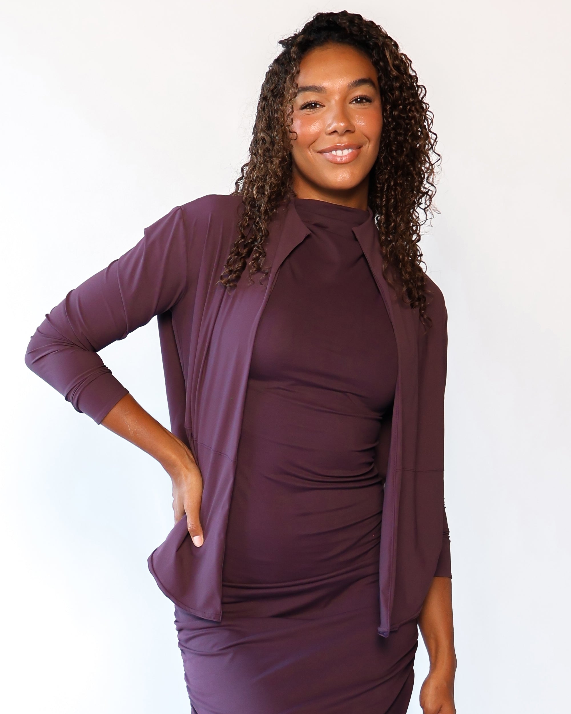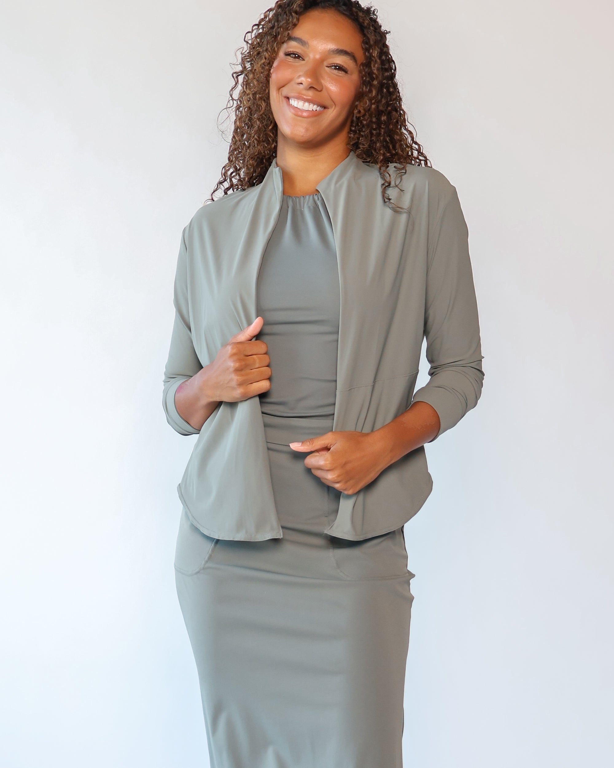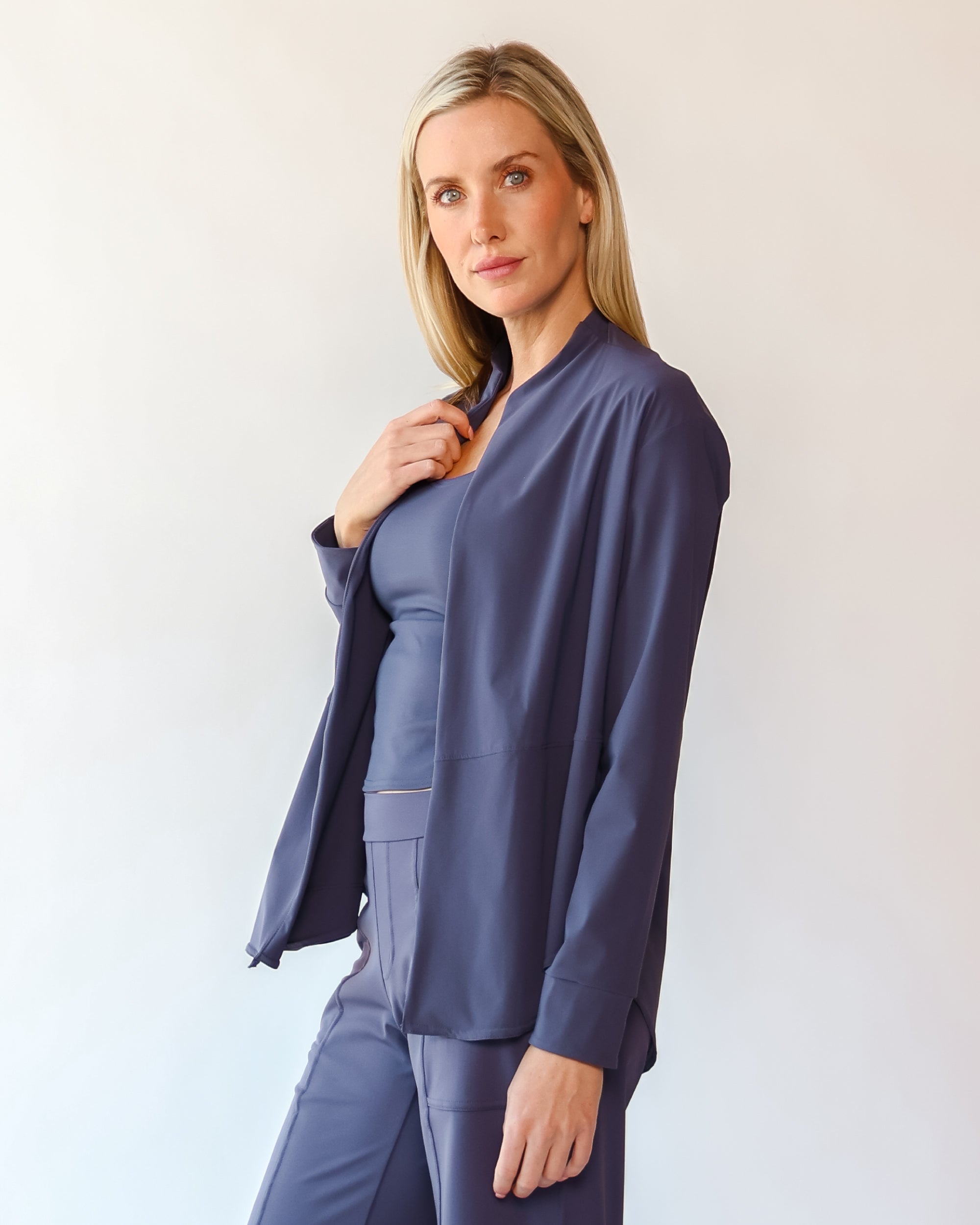 Our Ultra Soft Travel Knit has a gorgeous drape & gentle stretch, making it the ultimate choice for comfort & elegance during long trips. Developed with travelers in mind, this fabric adapts beautifully to natural body changes, so it fits just as well if you experience a slight weight fluctuation—or even while pregnant. Made from 88% recycled polyester crafted from post-consumer water bottles and blended with 12% elastane, it’s a sustainable choice that feels like a second skin. Low maintenance by design, this self-ironing material smooths wrinkles with your body heat, while its anti-microbial properties keep it fresh for multiple wears without washing.