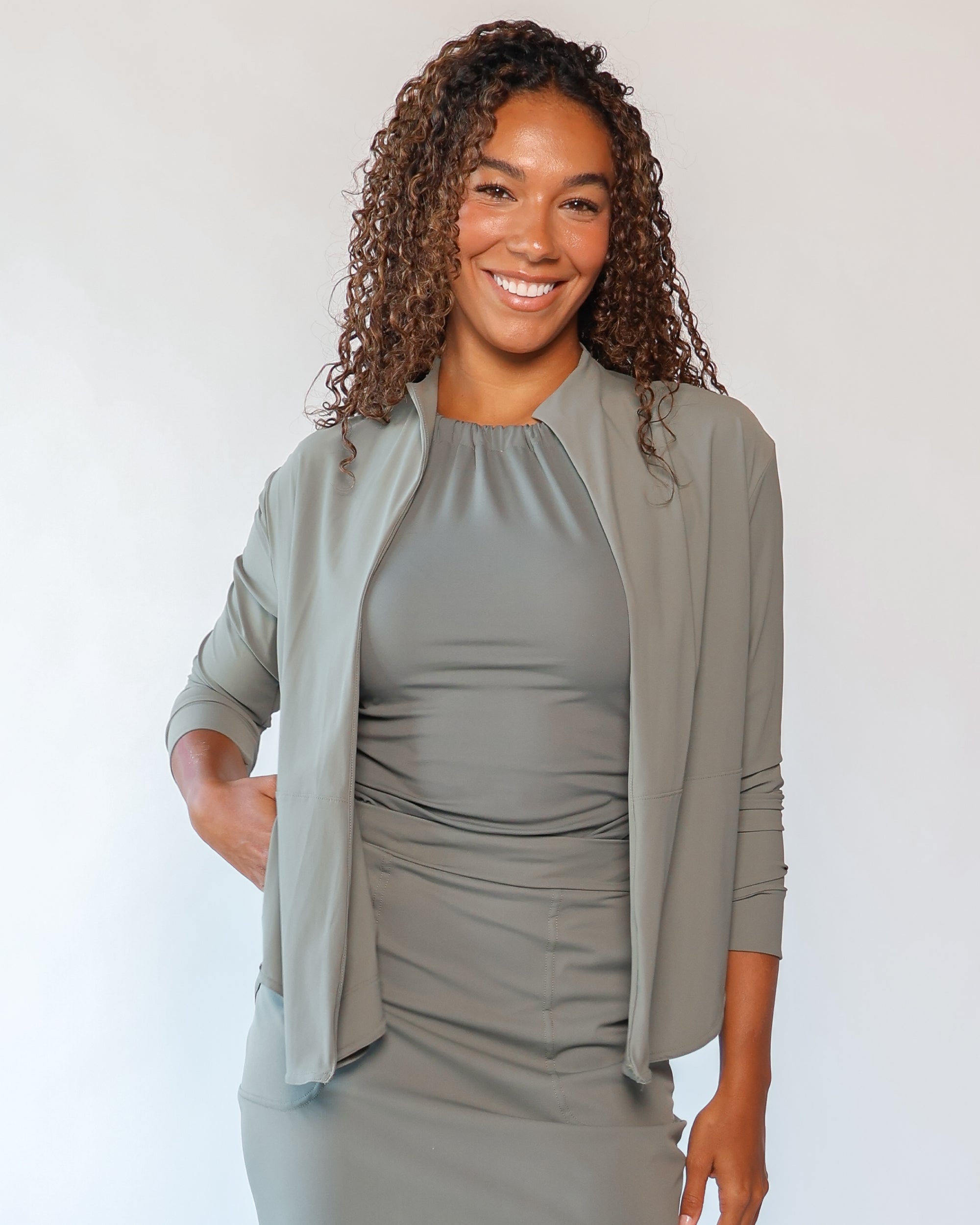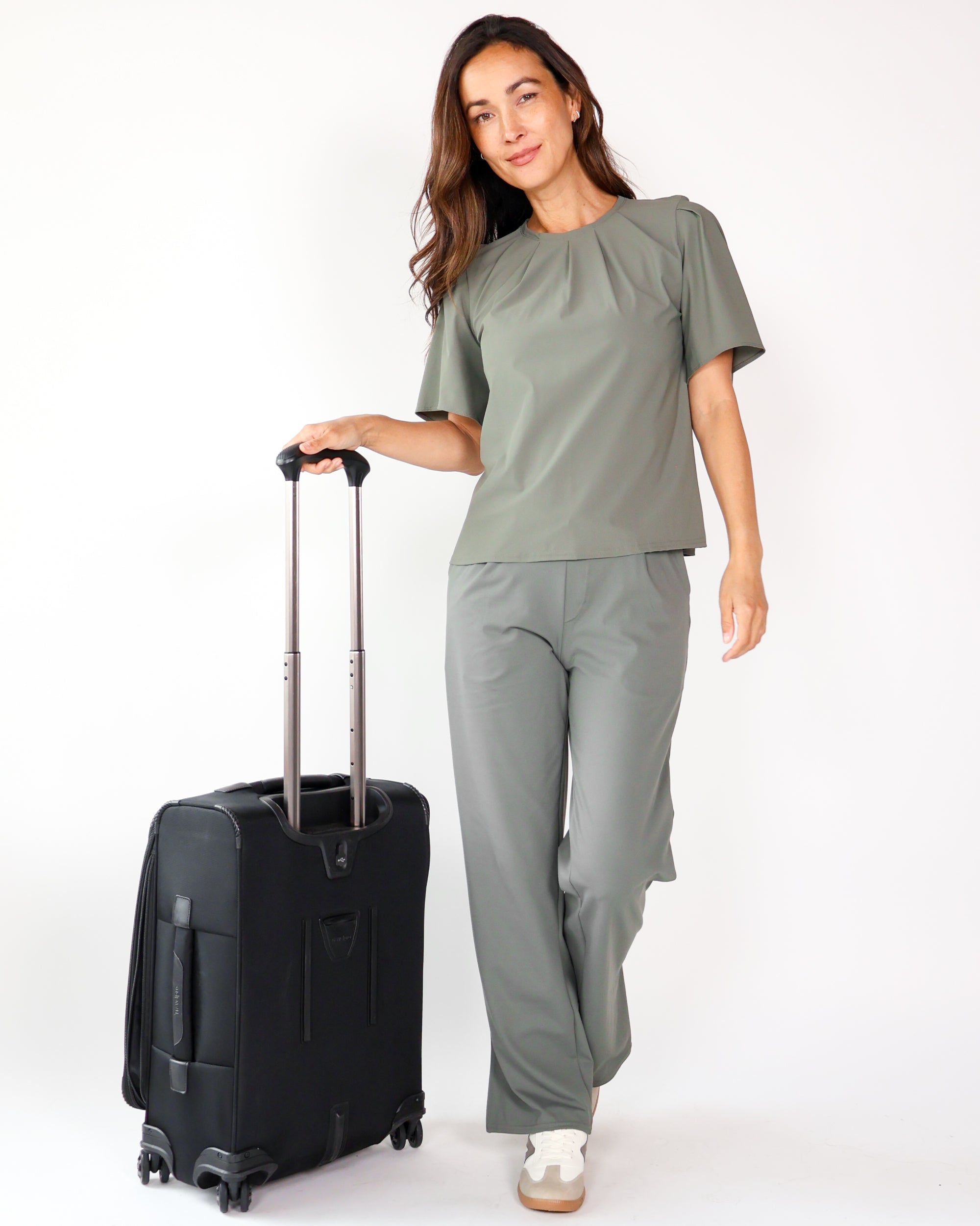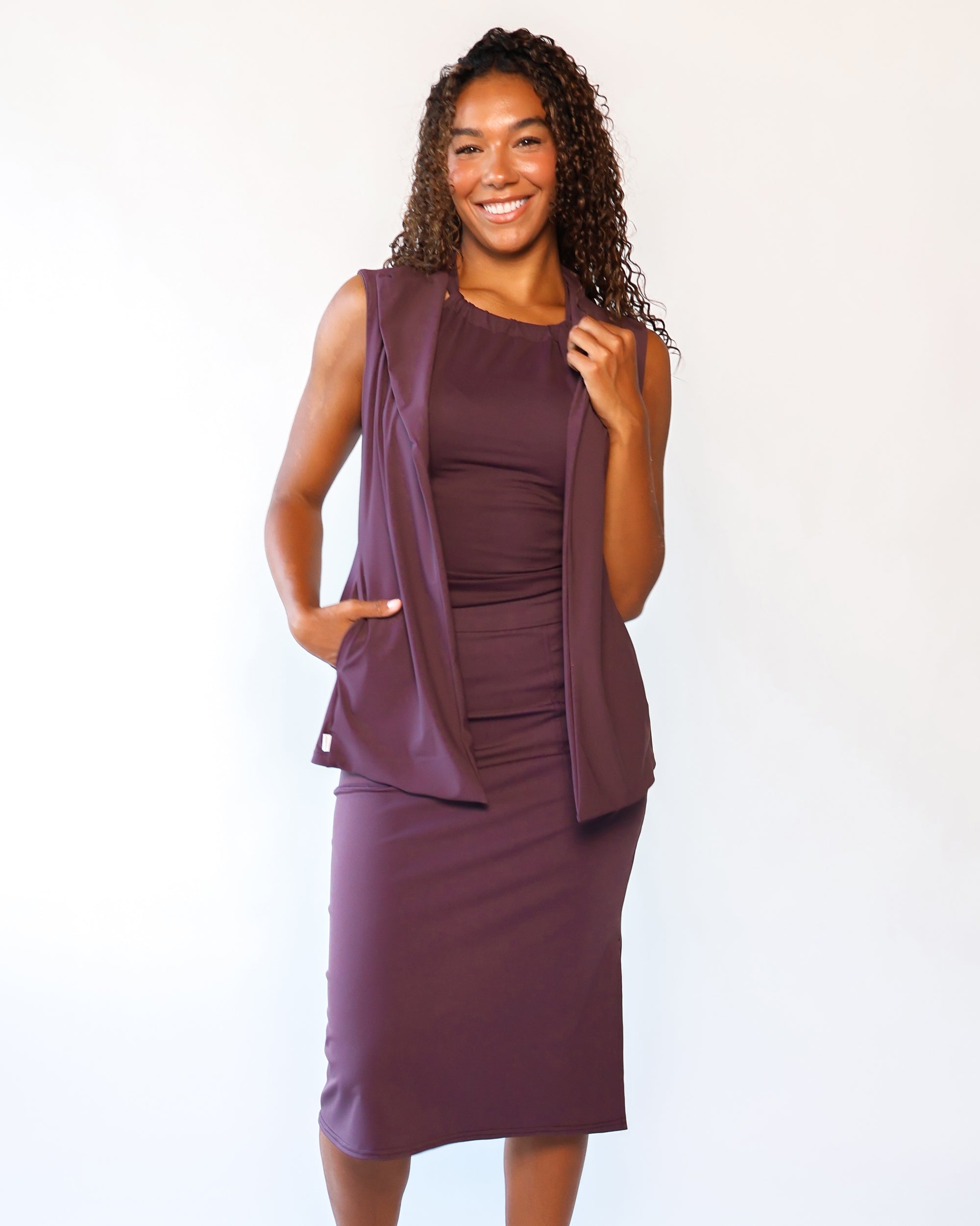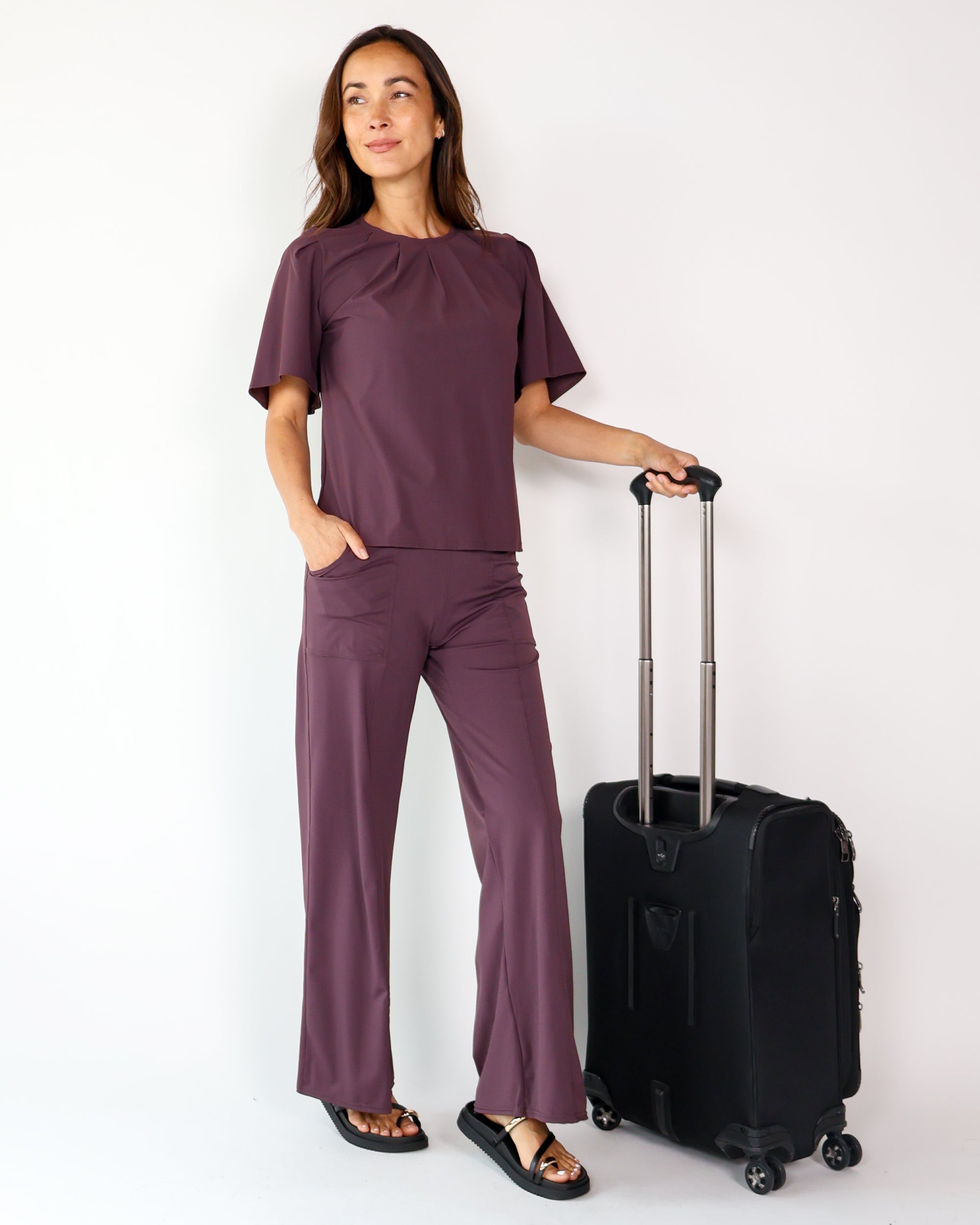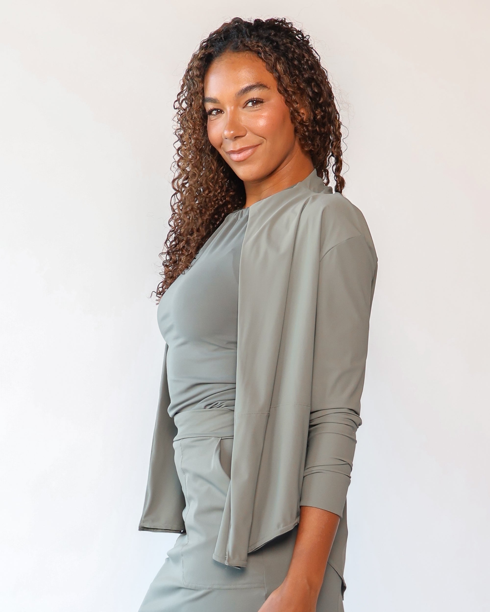 Our Ultra Soft Travel Knit has a gorgeous drape & gentle stretch, making it the ultimate choice for comfort & elegance during long trips. Developed with travelers in mind, this fabric adapts beautifully to natural body changes, so it fits just as well if you experience a slight weight fluctuation—or even while pregnant. Made from 88% recycled polyester crafted from post-consumer water bottles and blended with 12% elastane, it’s a sustainable choice that feels like a second skin. Low maintenance by design, this self-ironing material smooths wrinkles with your body heat, while its anti-microbial properties keep it fresh for multiple wears without washing.