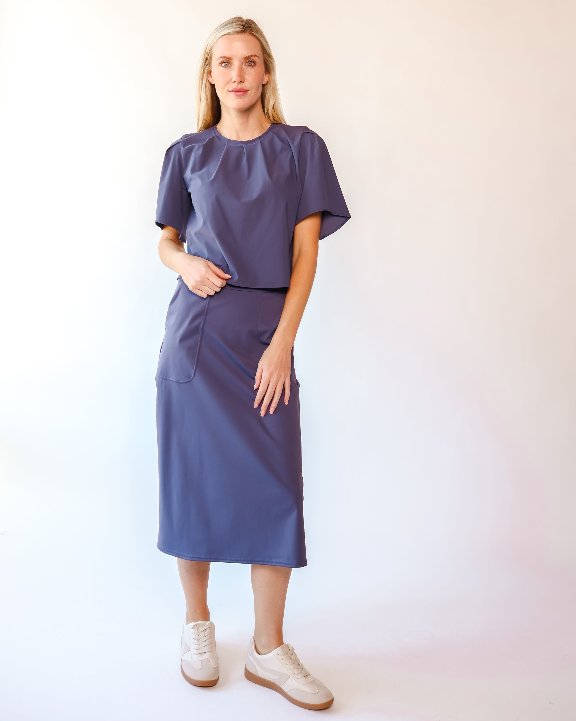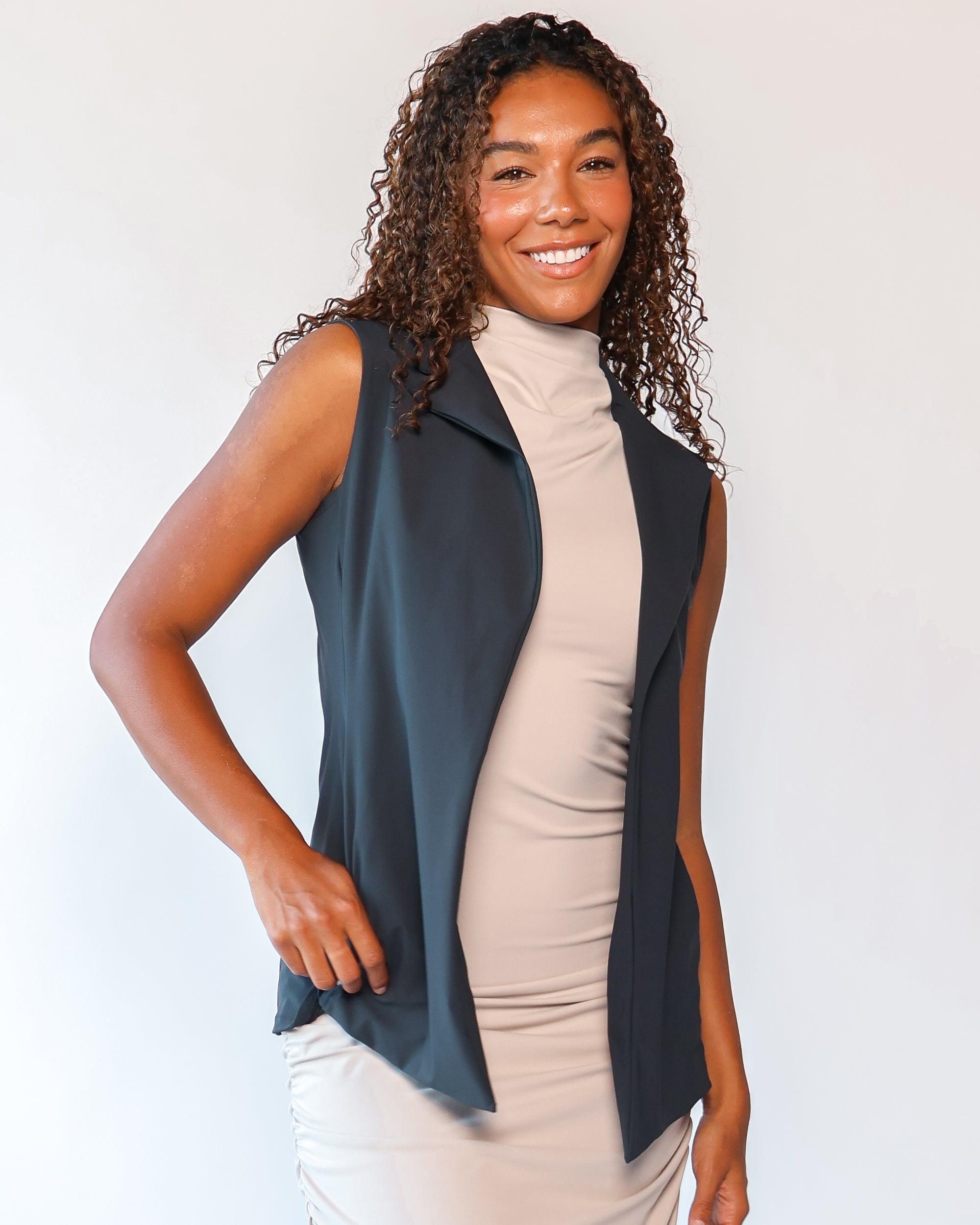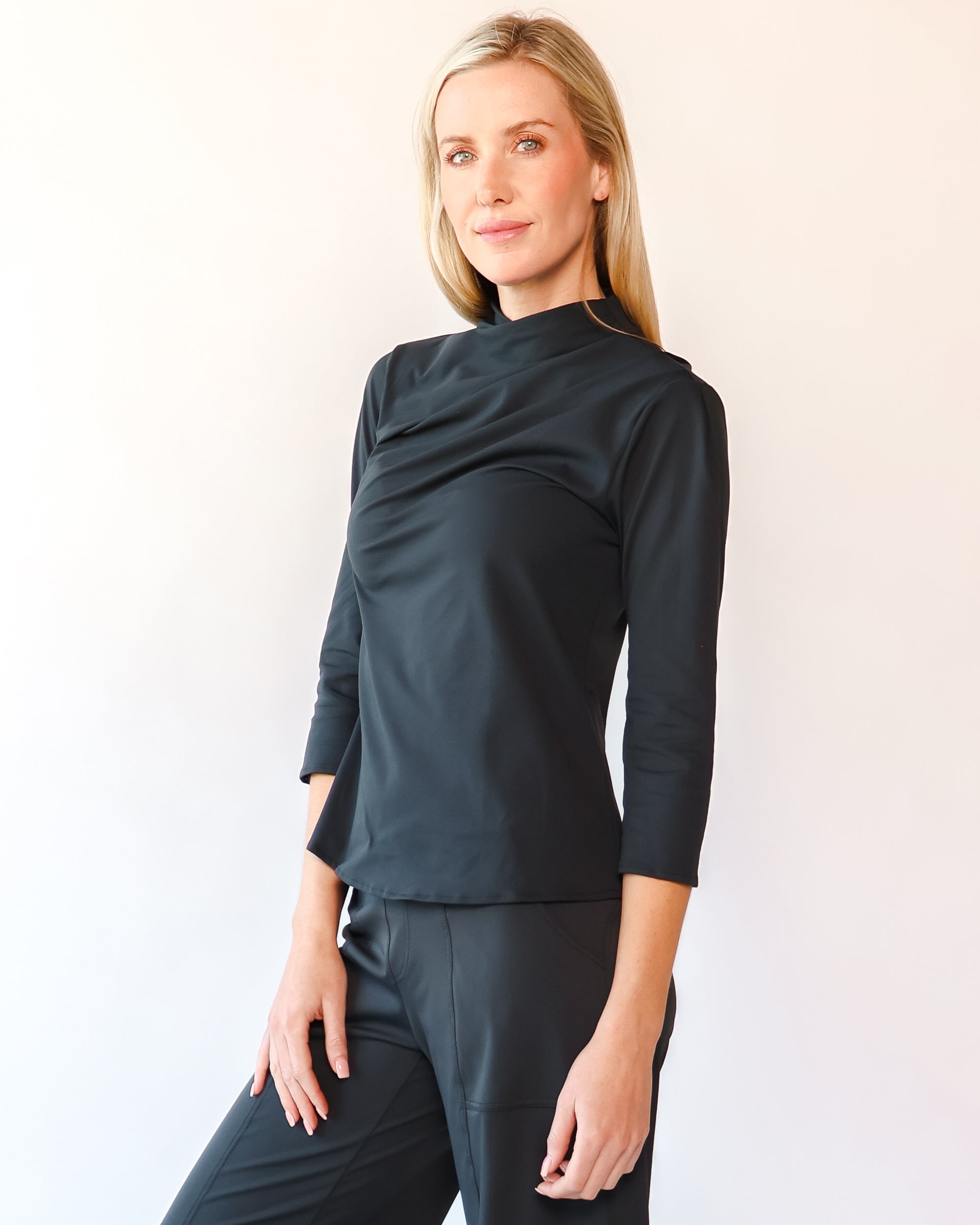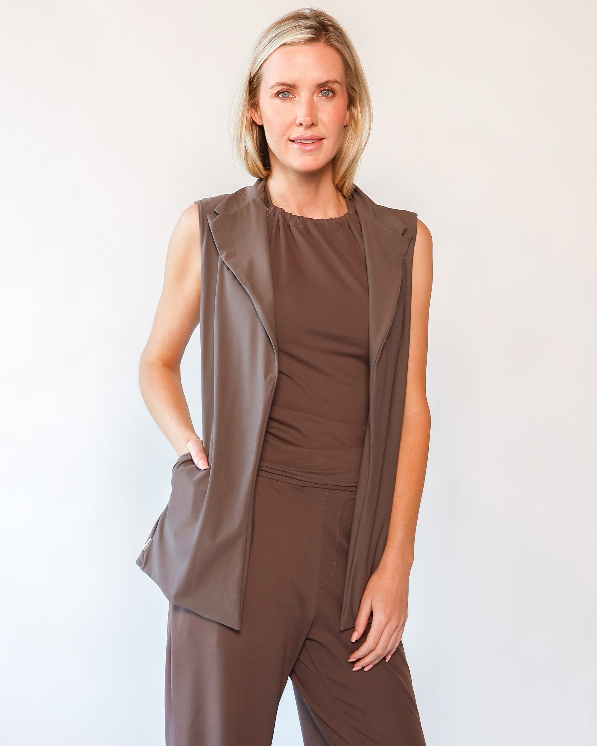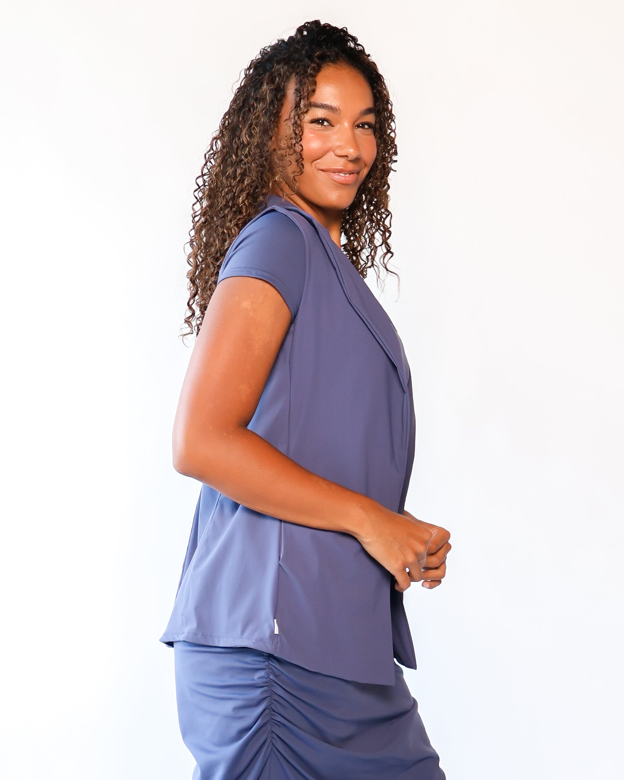 Our Ultra Soft Travel Knit has a gorgeous drape & gentle stretch, making it the ultimate choice for comfort & elegance during long trips. Developed with travelers in mind, this fabric adapts beautifully to natural body changes, so it fits just as well if you experience a slight weight fluctuation—or even while pregnant. Made from 88% recycled polyester crafted from post-consumer water bottles and blended with 12% elastane, it’s a sustainable choice that feels like a second skin. Low maintenance by design, this self-ironing material smooths wrinkles with your body heat, while its anti-microbial properties keep it fresh for multiple wears without washing.