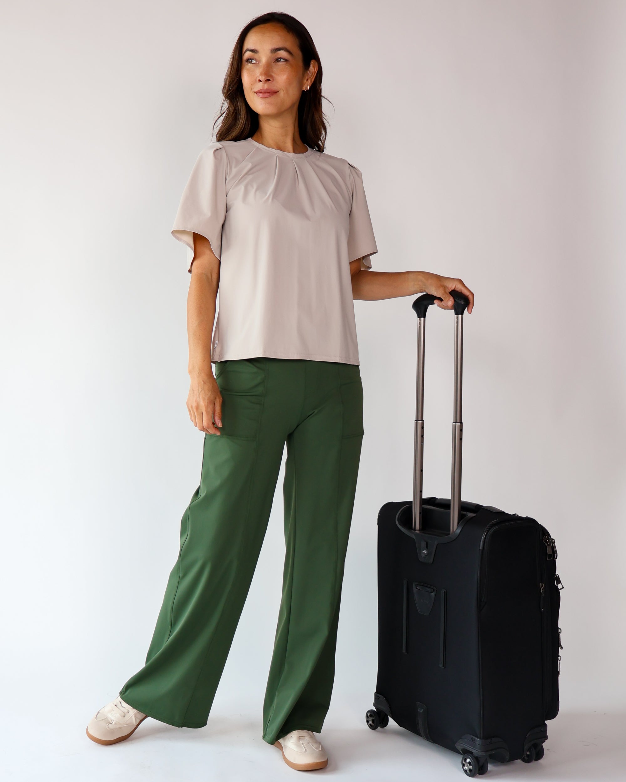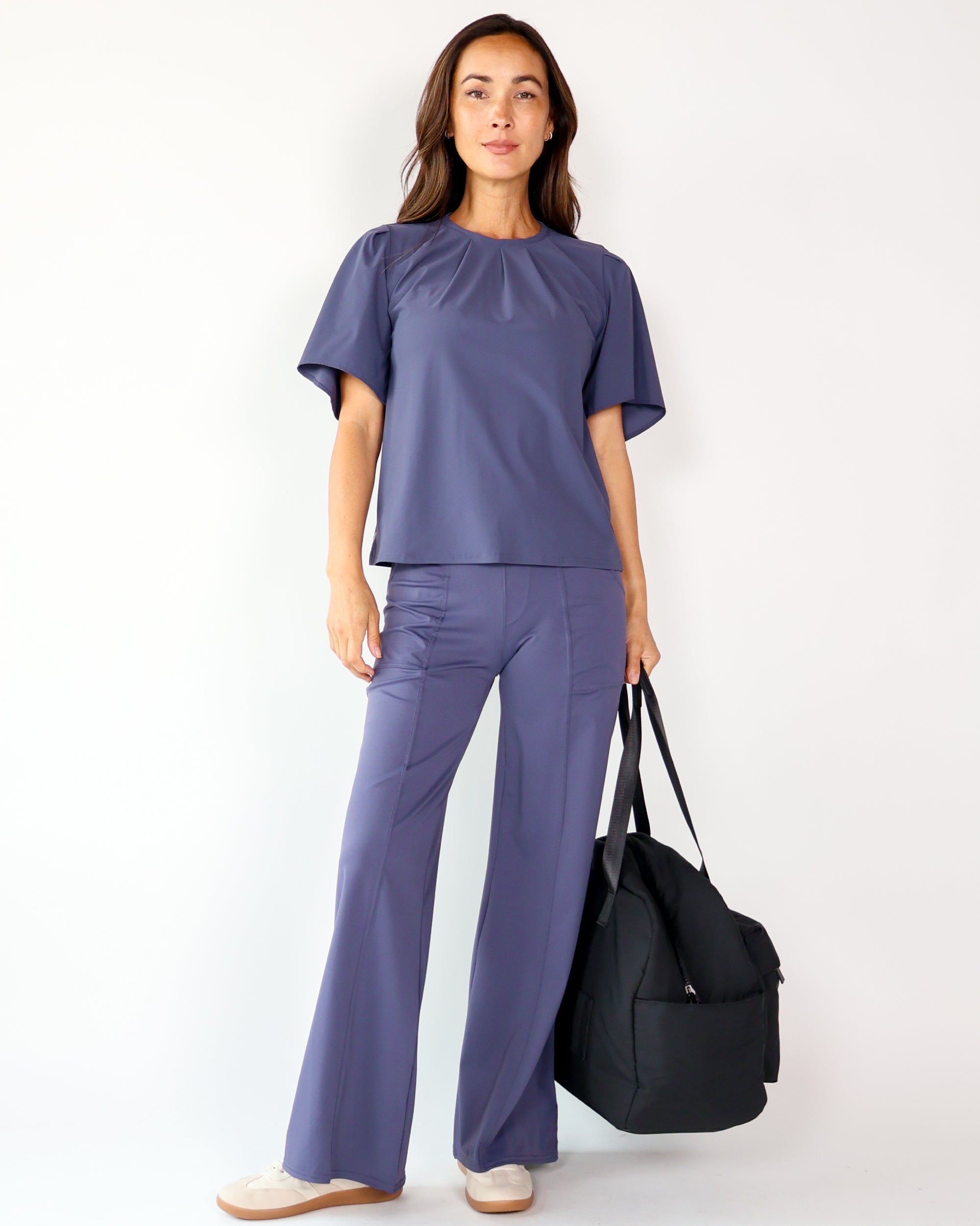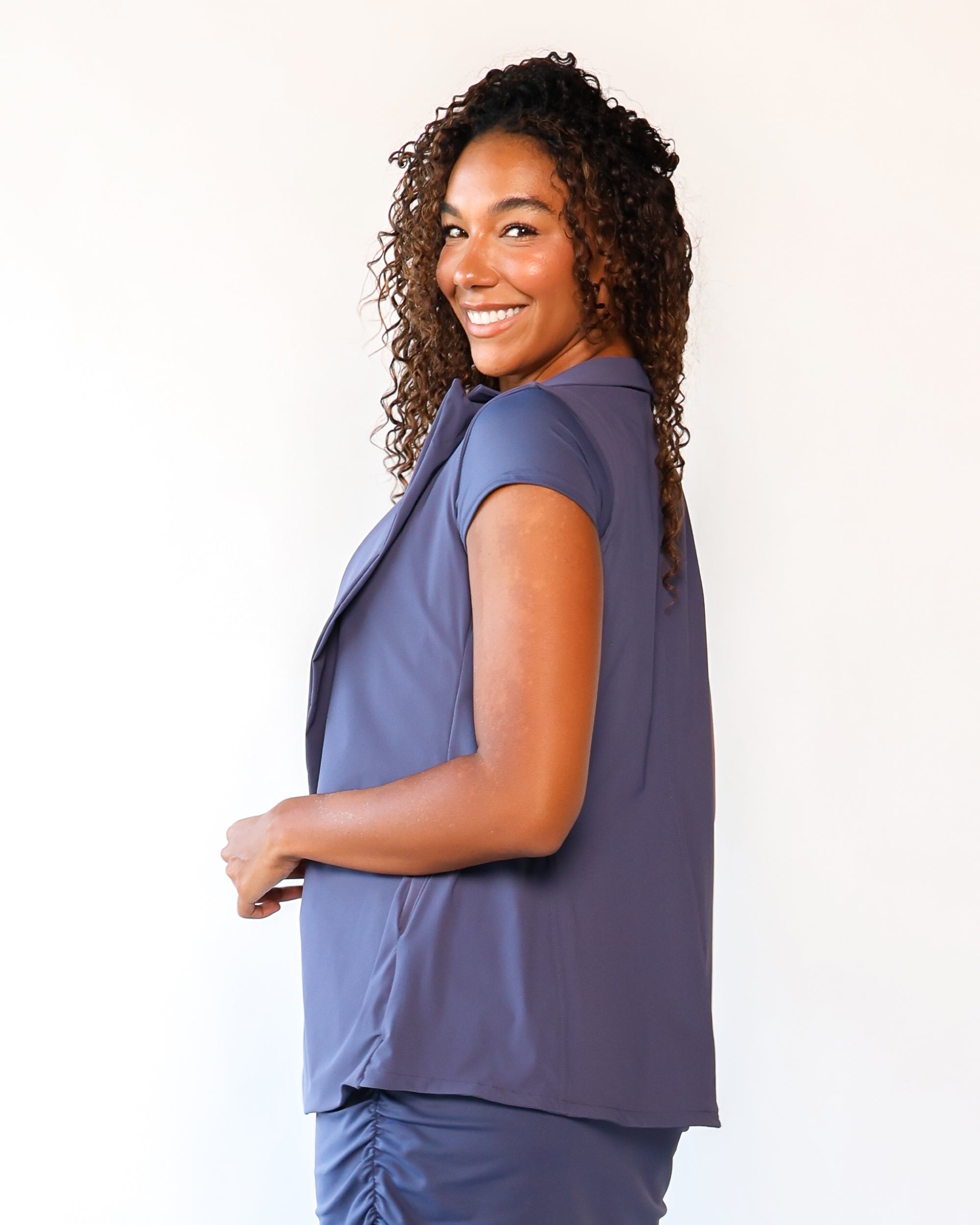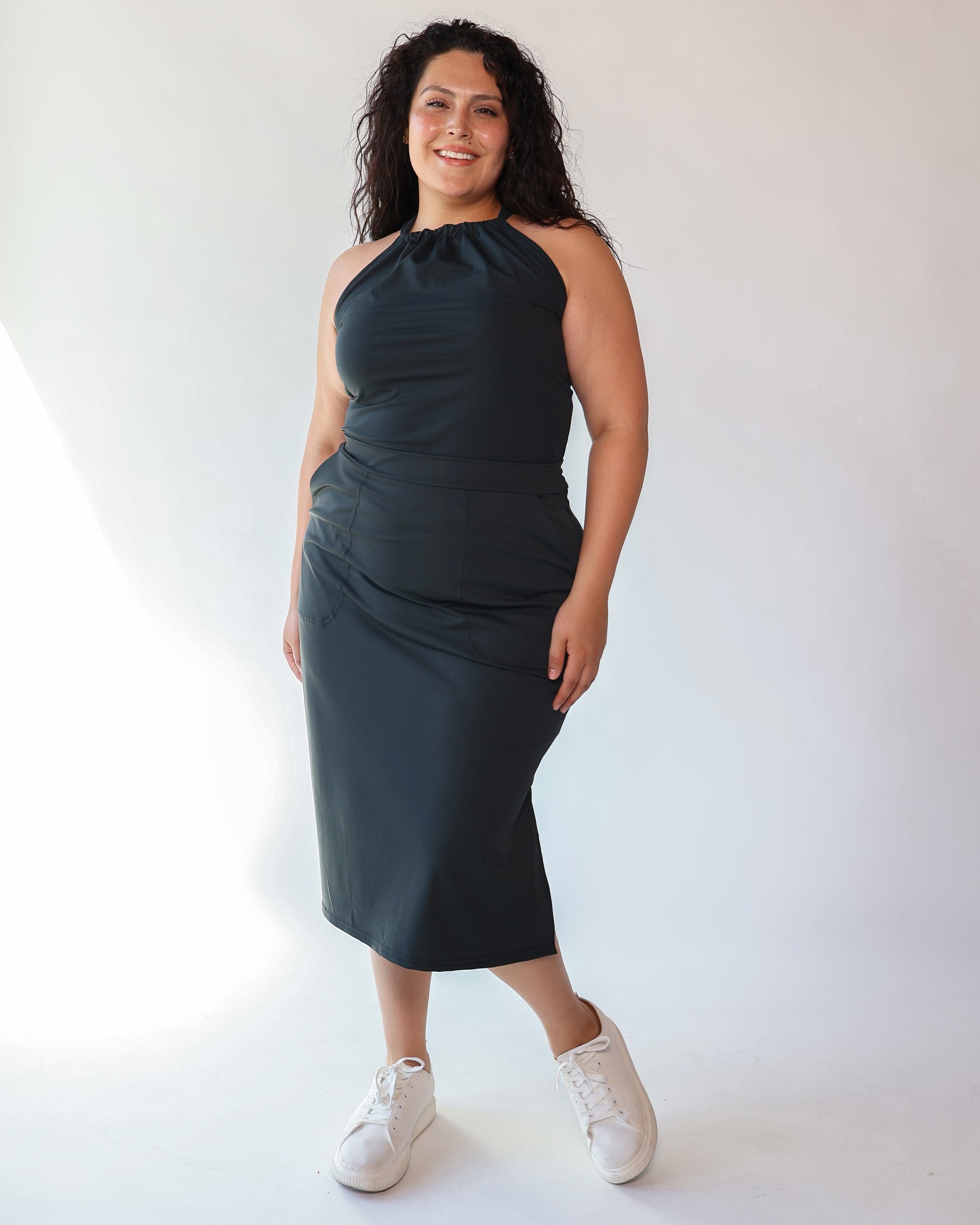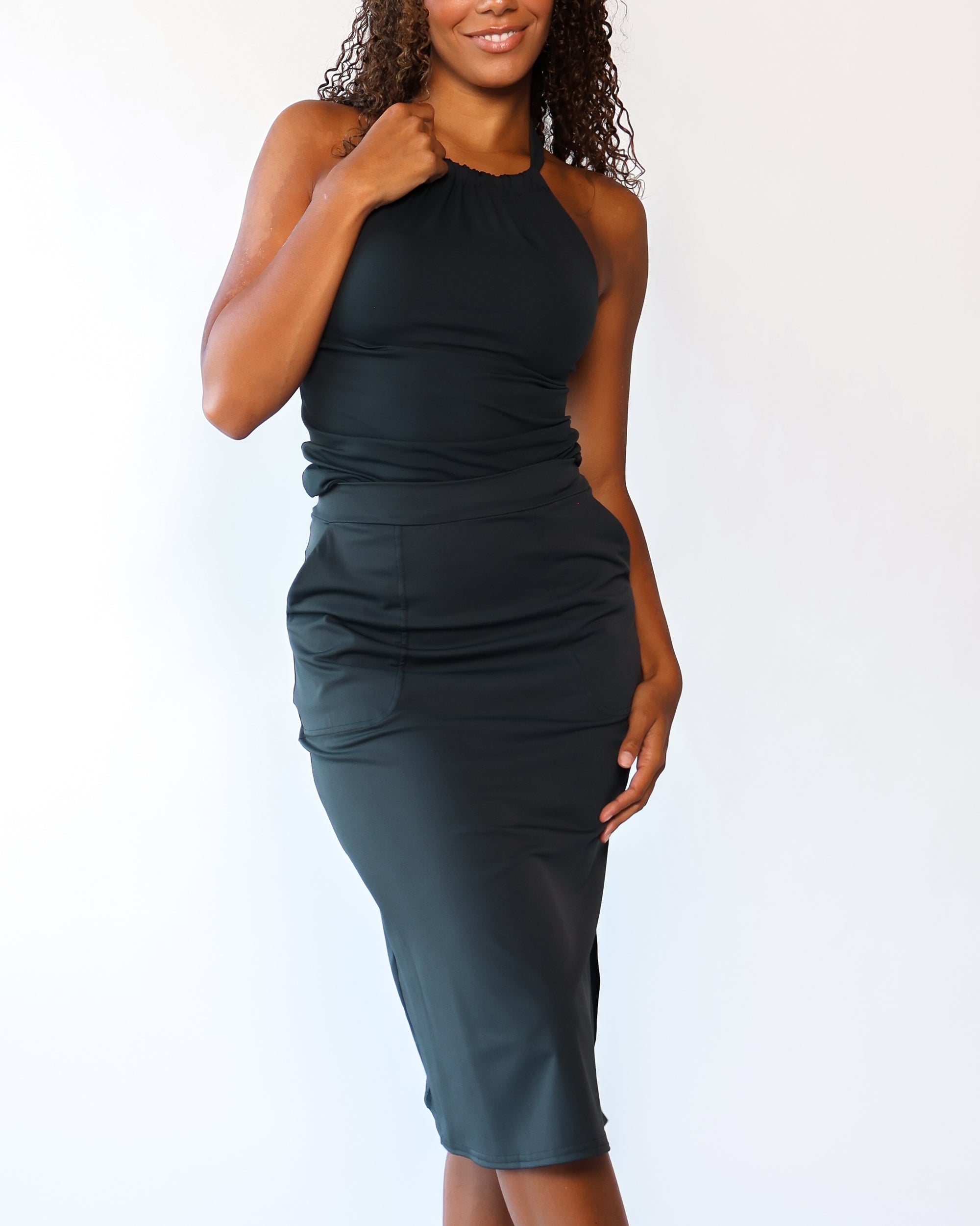 Our Ultra Soft Travel Knit has a gorgeous drape & gentle stretch, making it the ultimate choice for comfort & elegance during long trips. Developed with travelers in mind, this fabric adapts beautifully to natural body changes, so it fits just as well if you experience a slight weight fluctuation—or even while pregnant. Made from 88% recycled polyester crafted from post-consumer water bottles and blended with 12% elastane, it’s a sustainable choice that feels like a second skin. Low maintenance by design, this self-ironing material smooths wrinkles with your body heat, while its anti-microbial properties keep it fresh for multiple wears without washing.