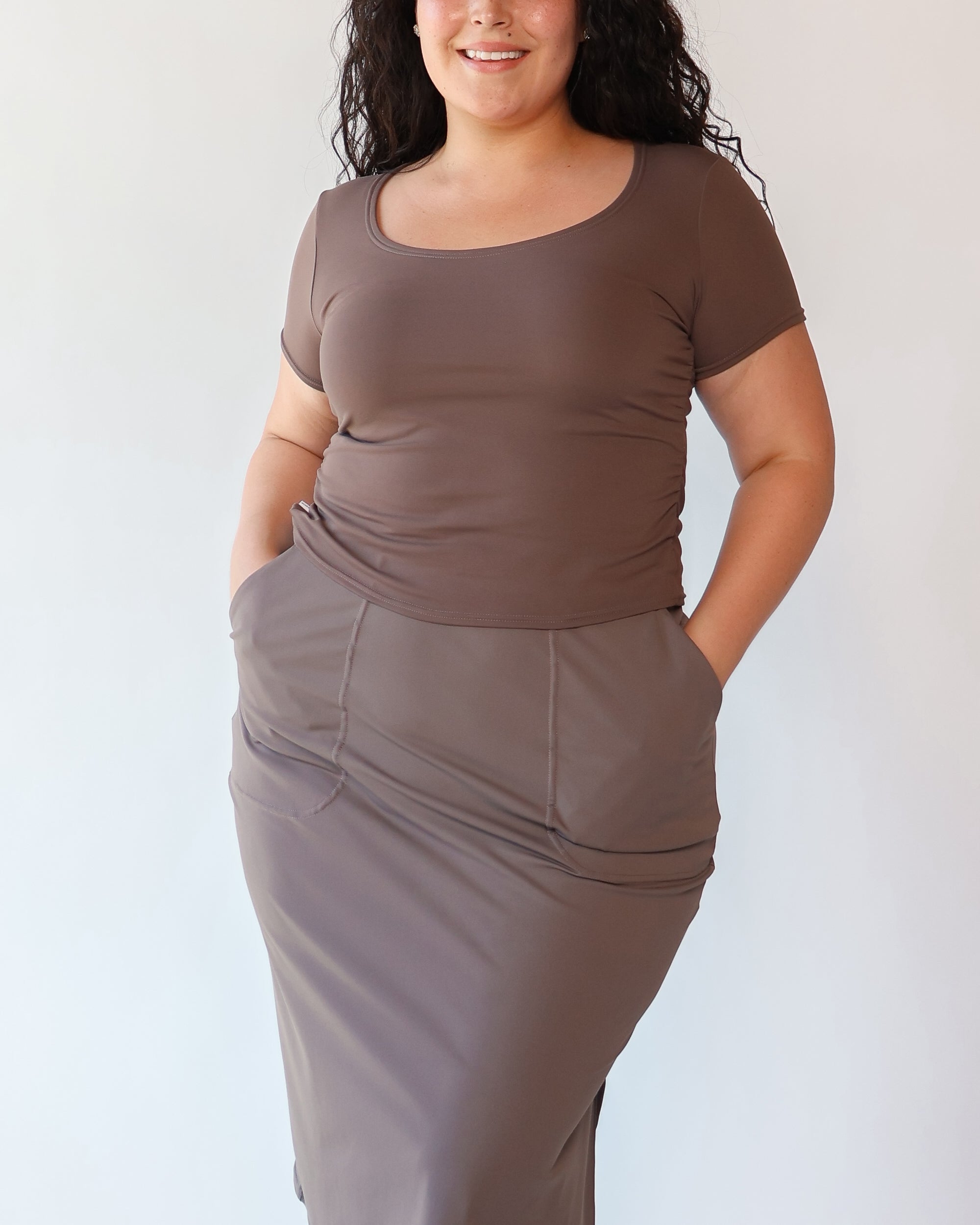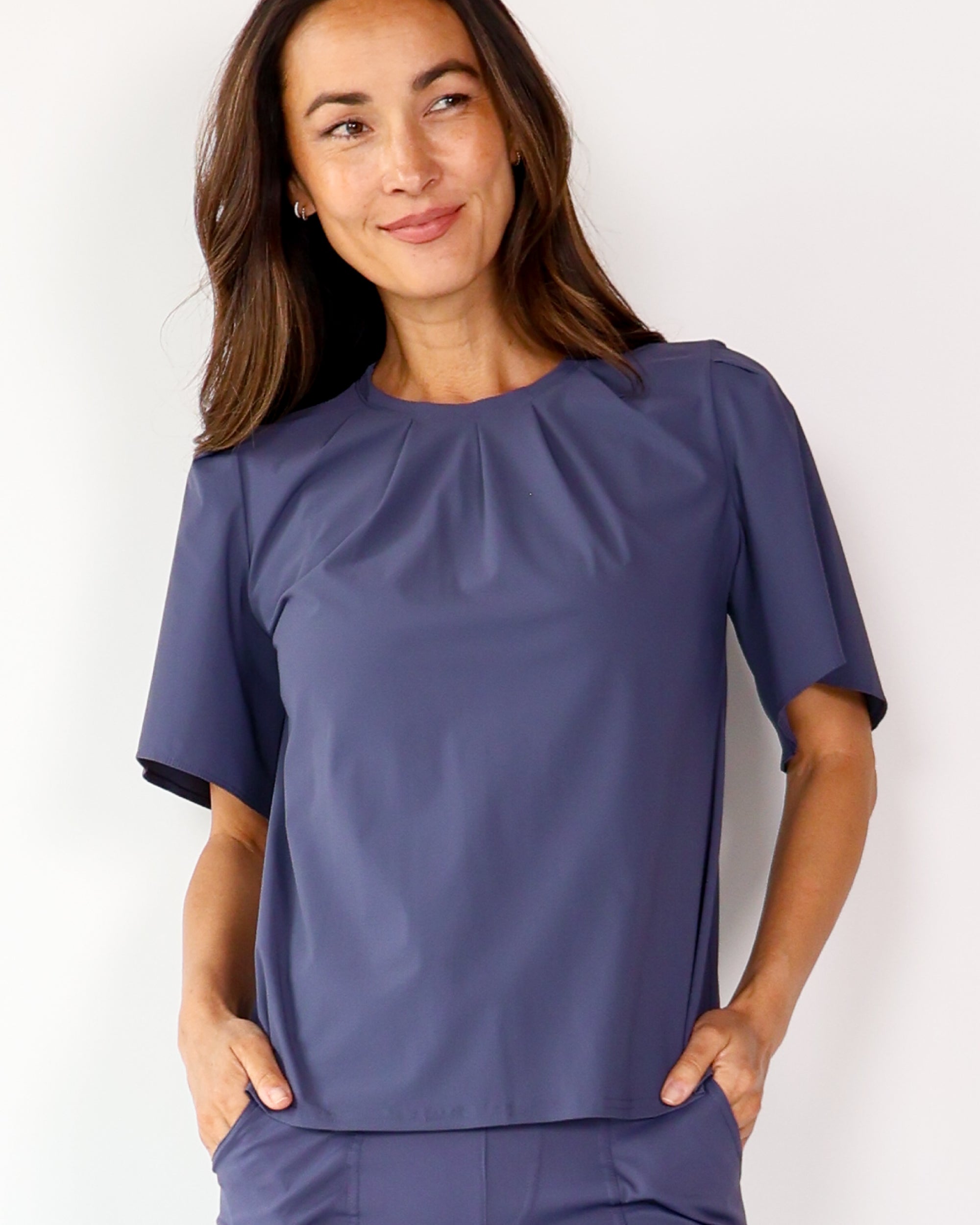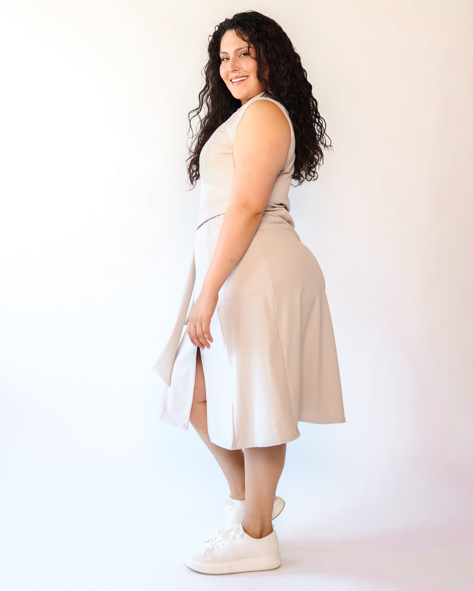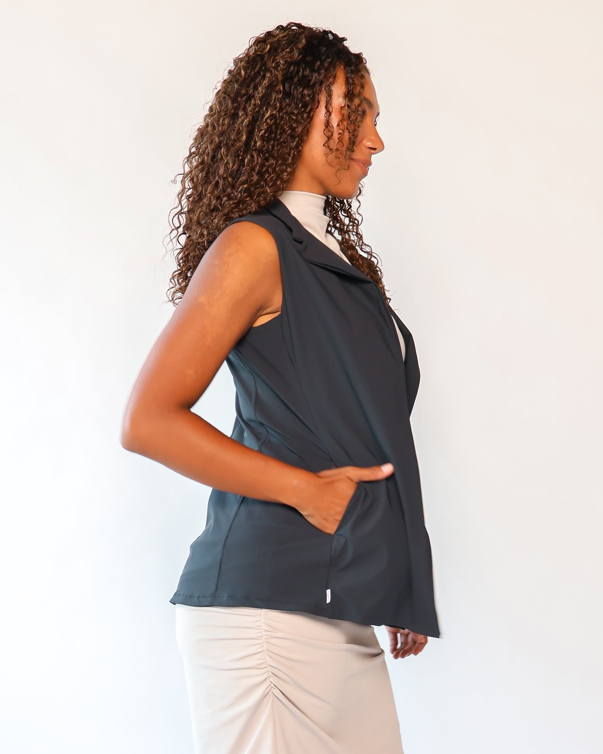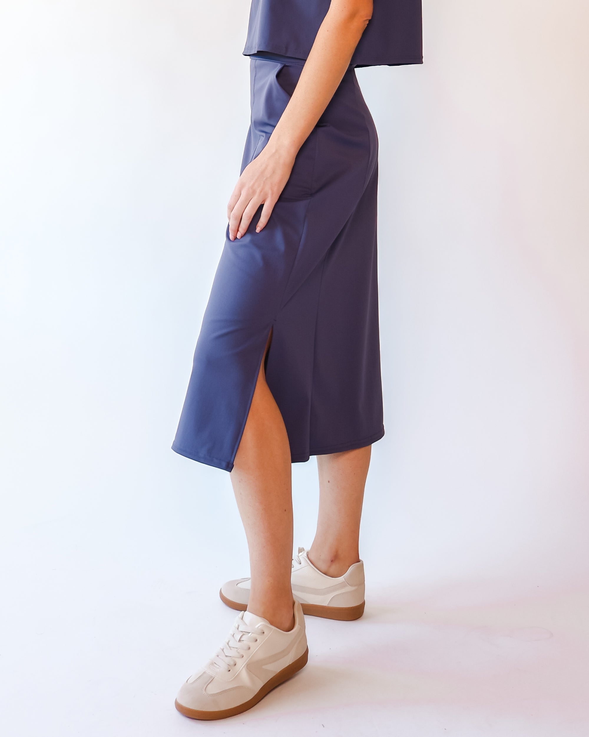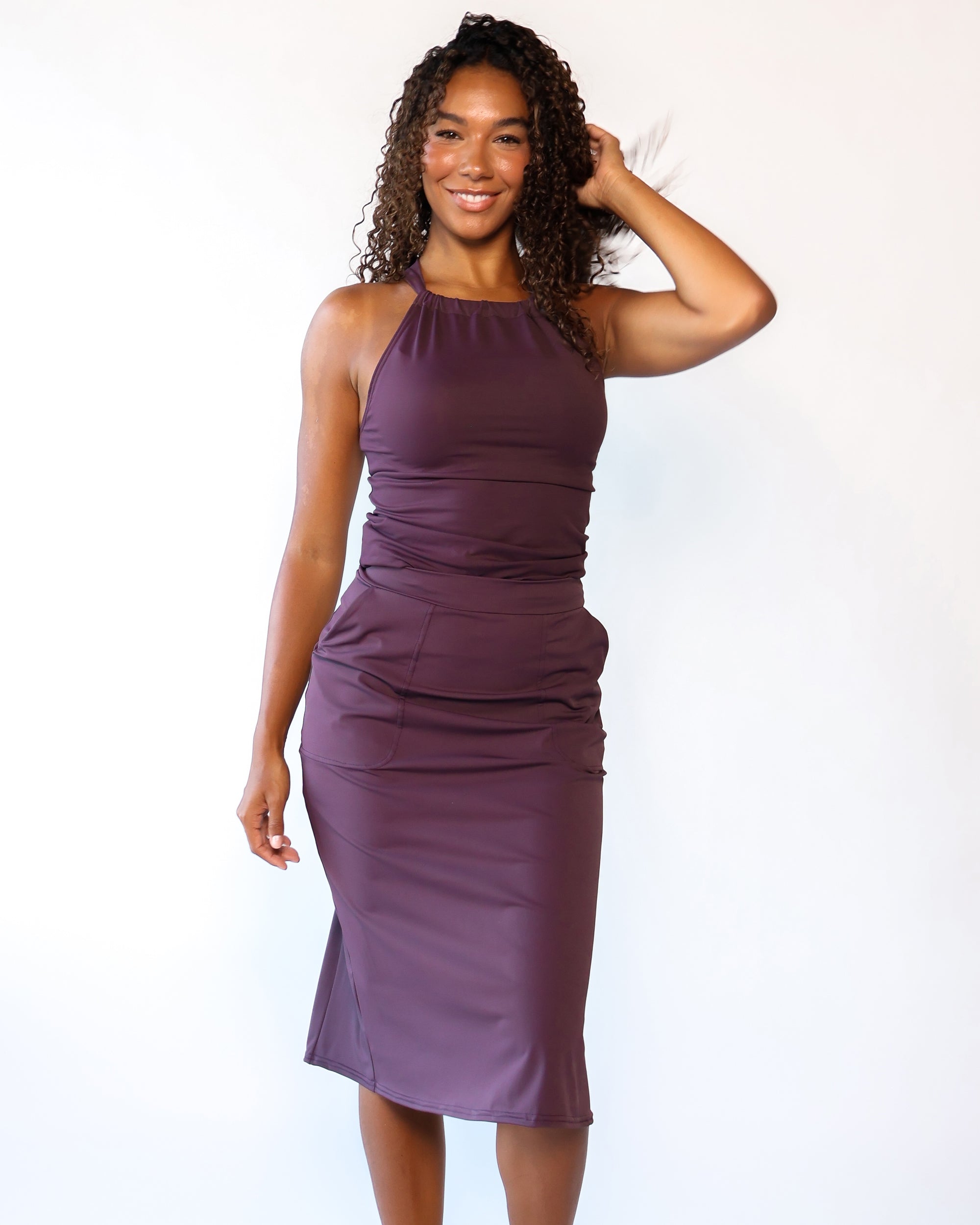Our Ultra Soft Travel Knit has a gorgeous drape & gentle stretch, making it the ultimate choice for comfort & elegance during long trips. Developed with travelers in mind, this fabric adapts beautifully to natural body changes, so it fits just as well if you experience a slight weight fluctuation—or even while pregnant. Made from 88% recycled polyester crafted from post-consumer water bottles and blended with 12% elastane, it’s a sustainable choice that feels like a second skin. Low maintenance by design, this self-ironing material smooths wrinkles with your body heat, while its anti-microbial properties keep it fresh for multiple wears without washing.