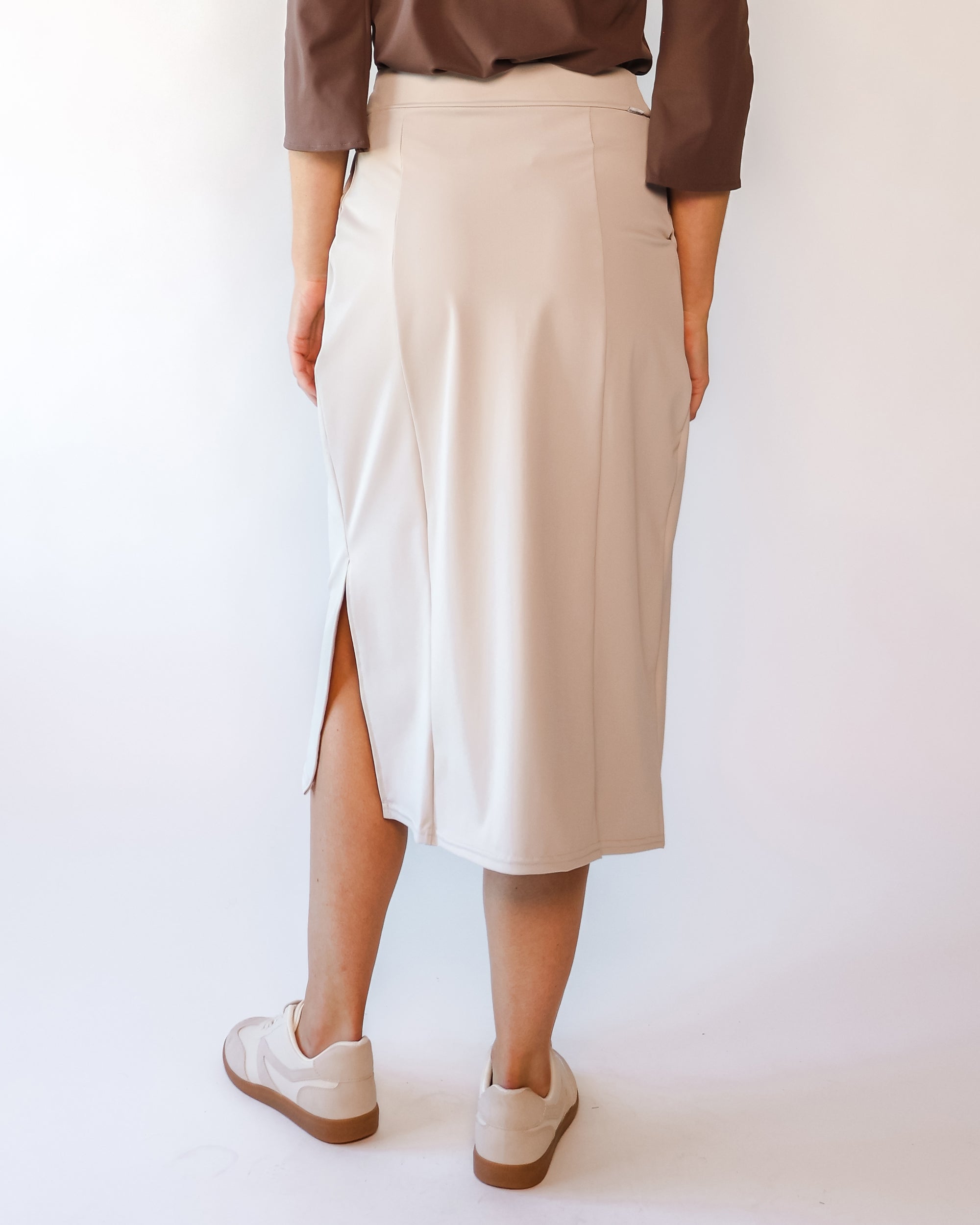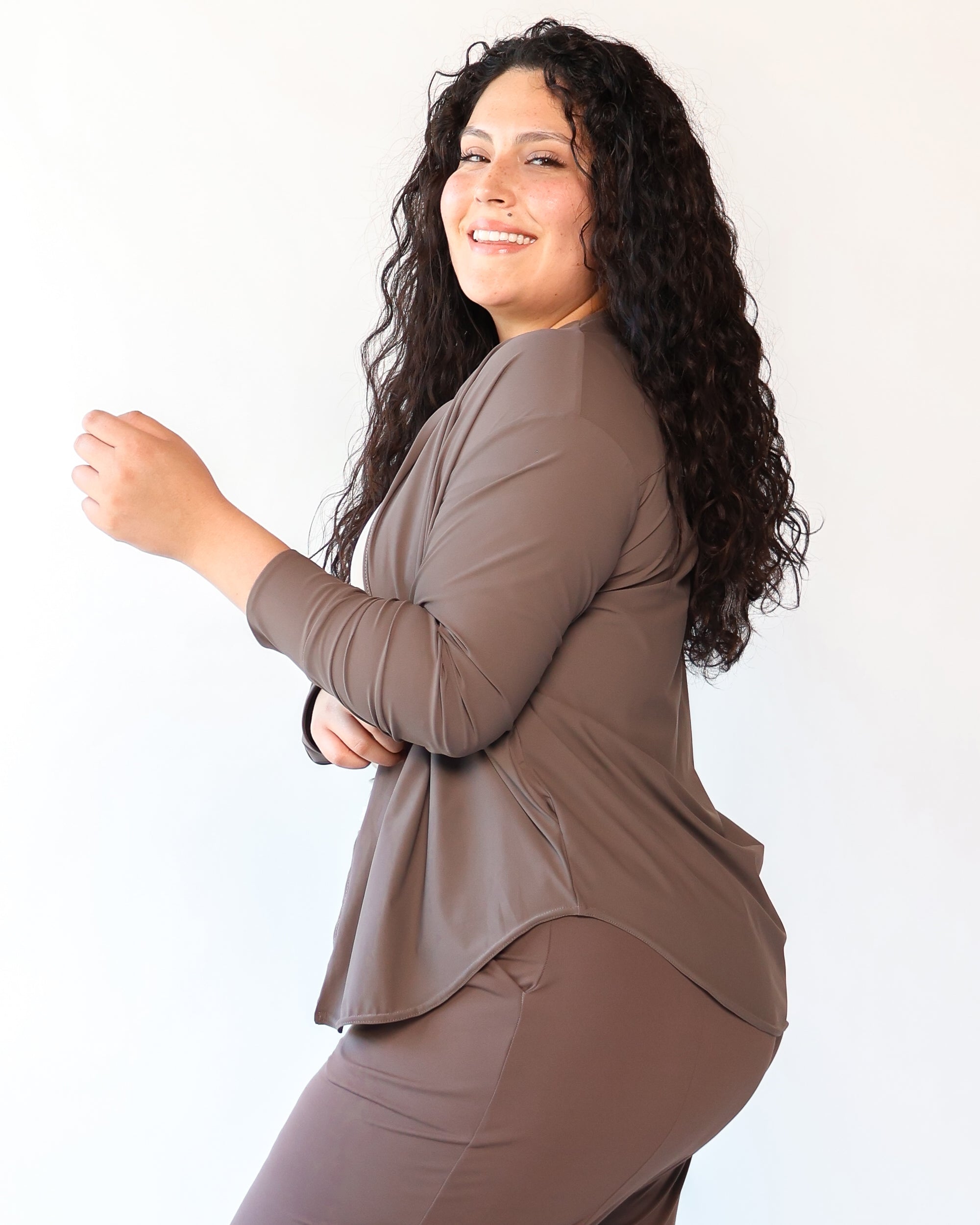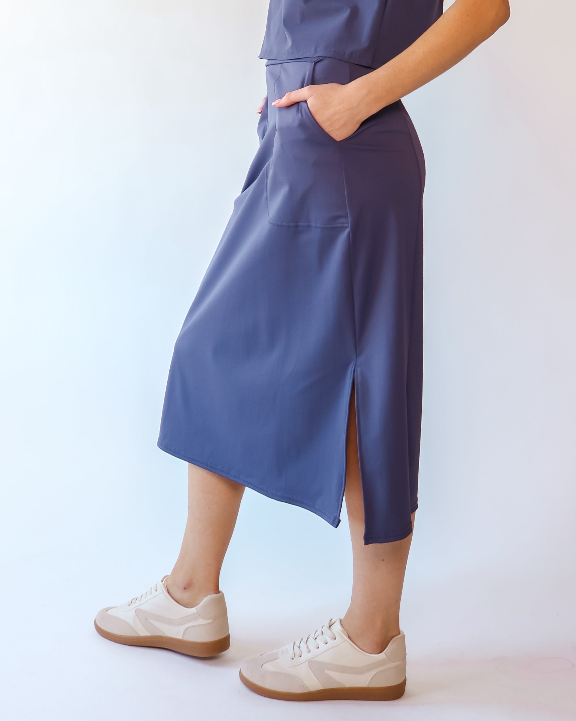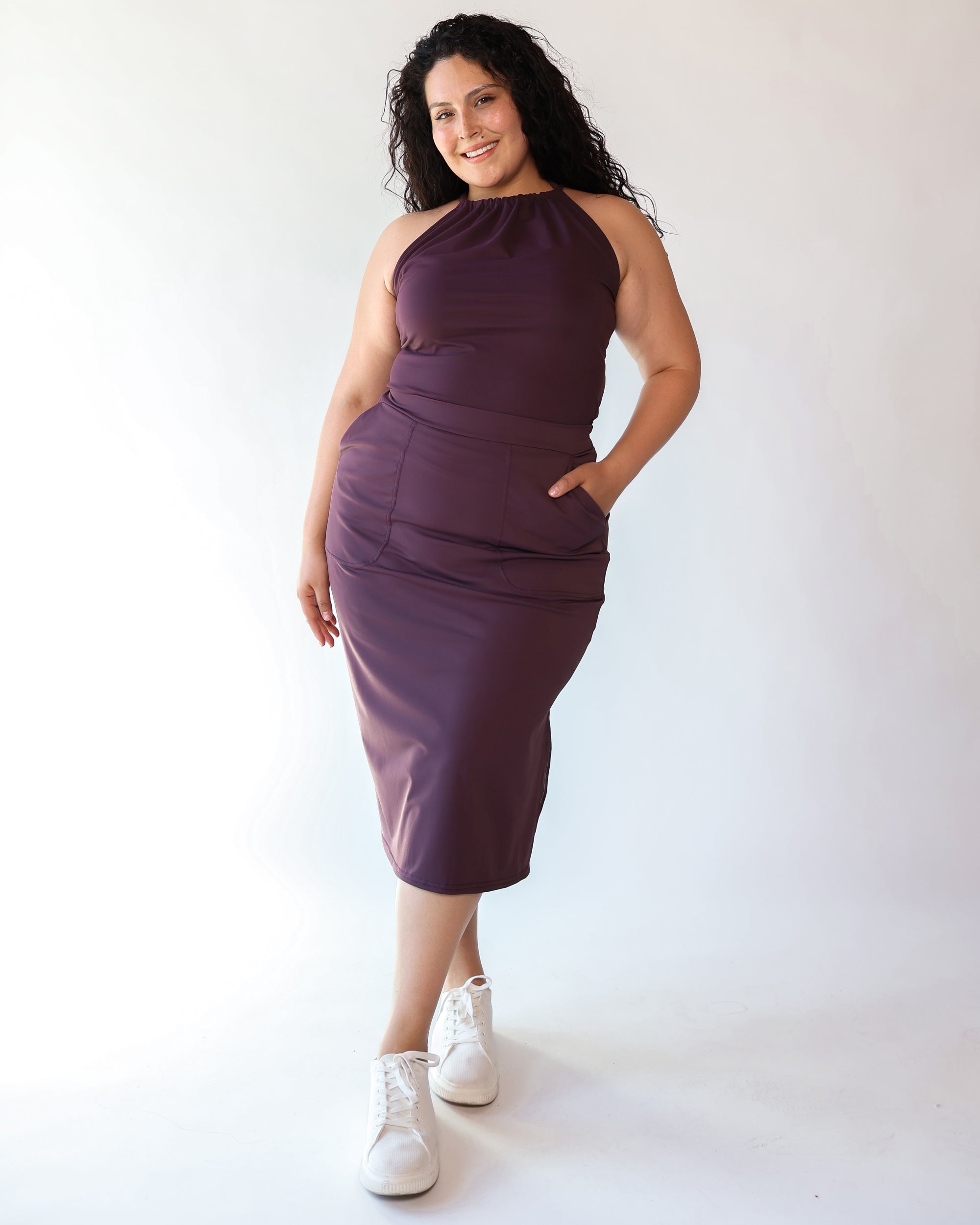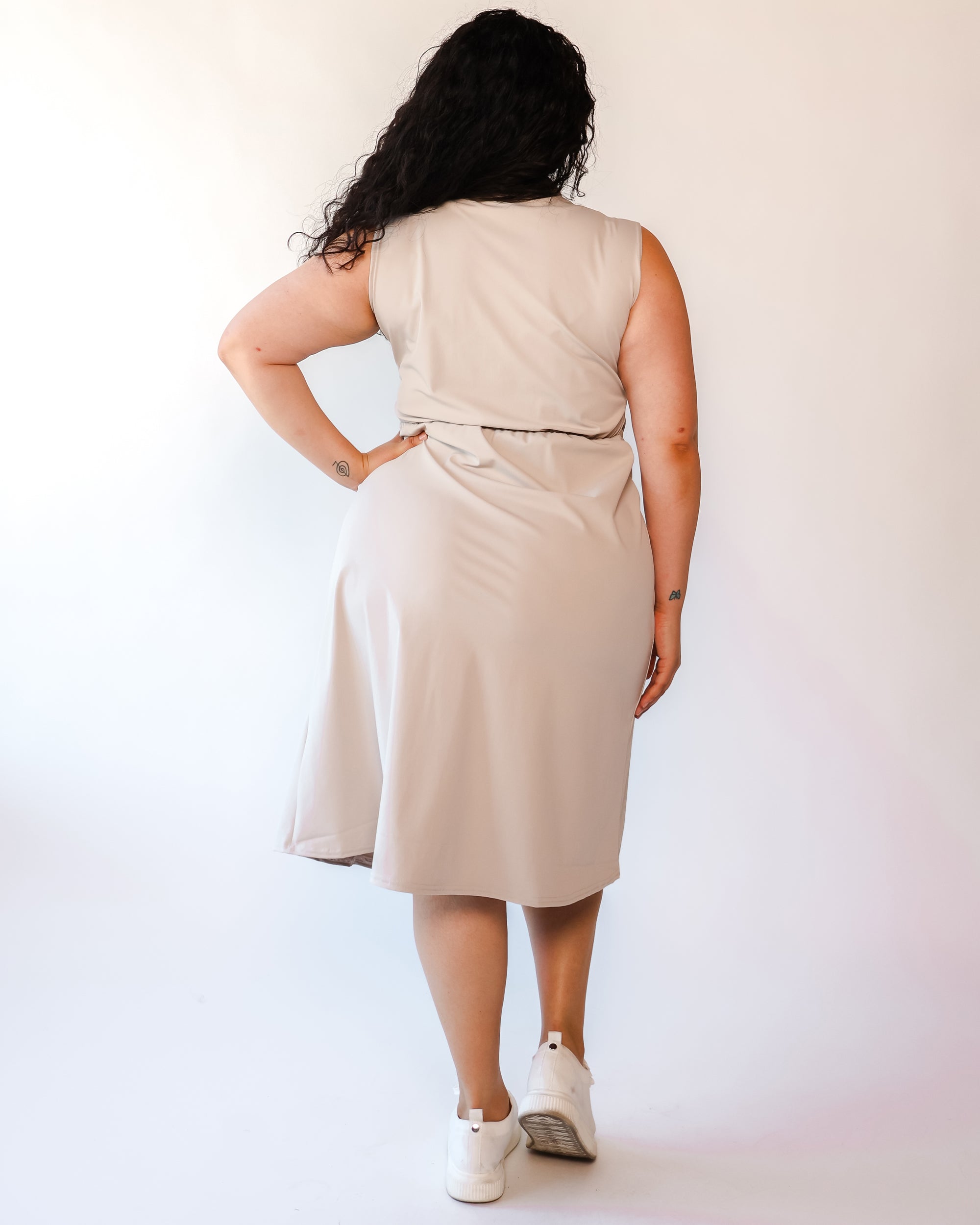 Our Ultra Soft Travel Knit has a gorgeous drape & gentle stretch, making it the ultimate choice for comfort & elegance during long trips. Developed with travelers in mind, this fabric adapts beautifully to natural body changes, so it fits just as well if you experience a slight weight fluctuation—or even while pregnant. Made from 88% recycled polyester crafted from post-consumer water bottles and blended with 12% elastane, it’s a sustainable choice that feels like a second skin. Low maintenance by design, this self-ironing material smooths wrinkles with your body heat, while its anti-microbial properties keep it fresh for multiple wears without washing.