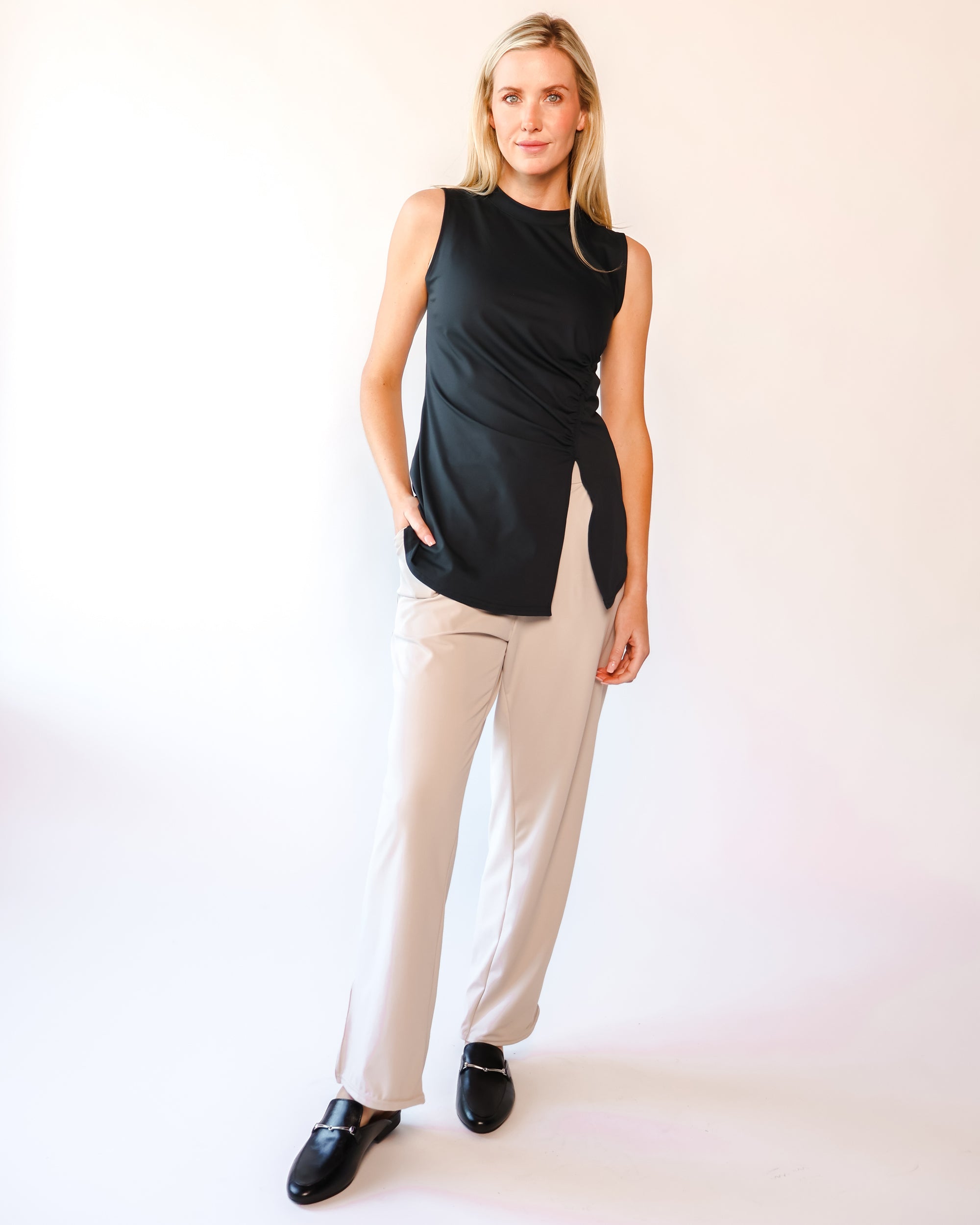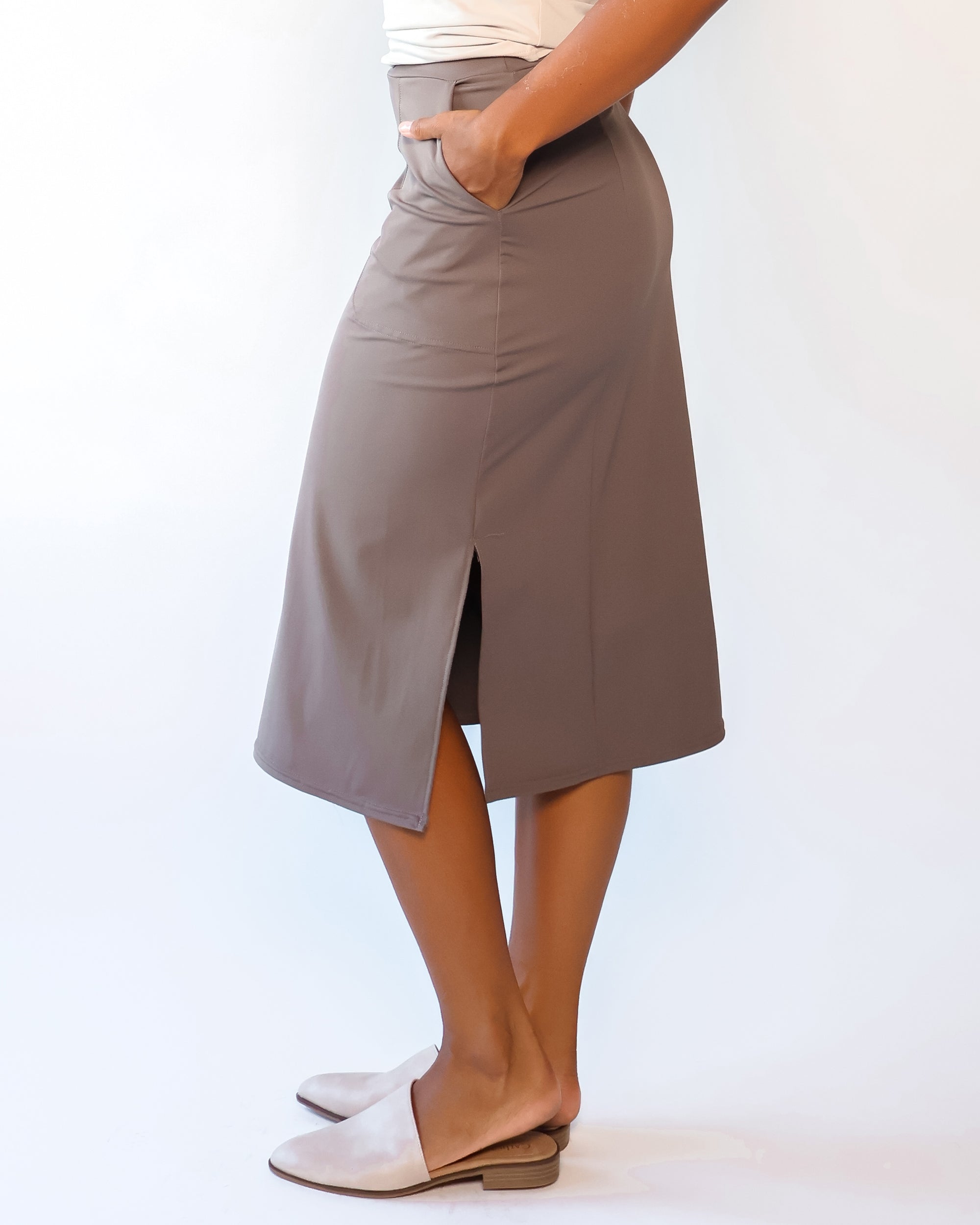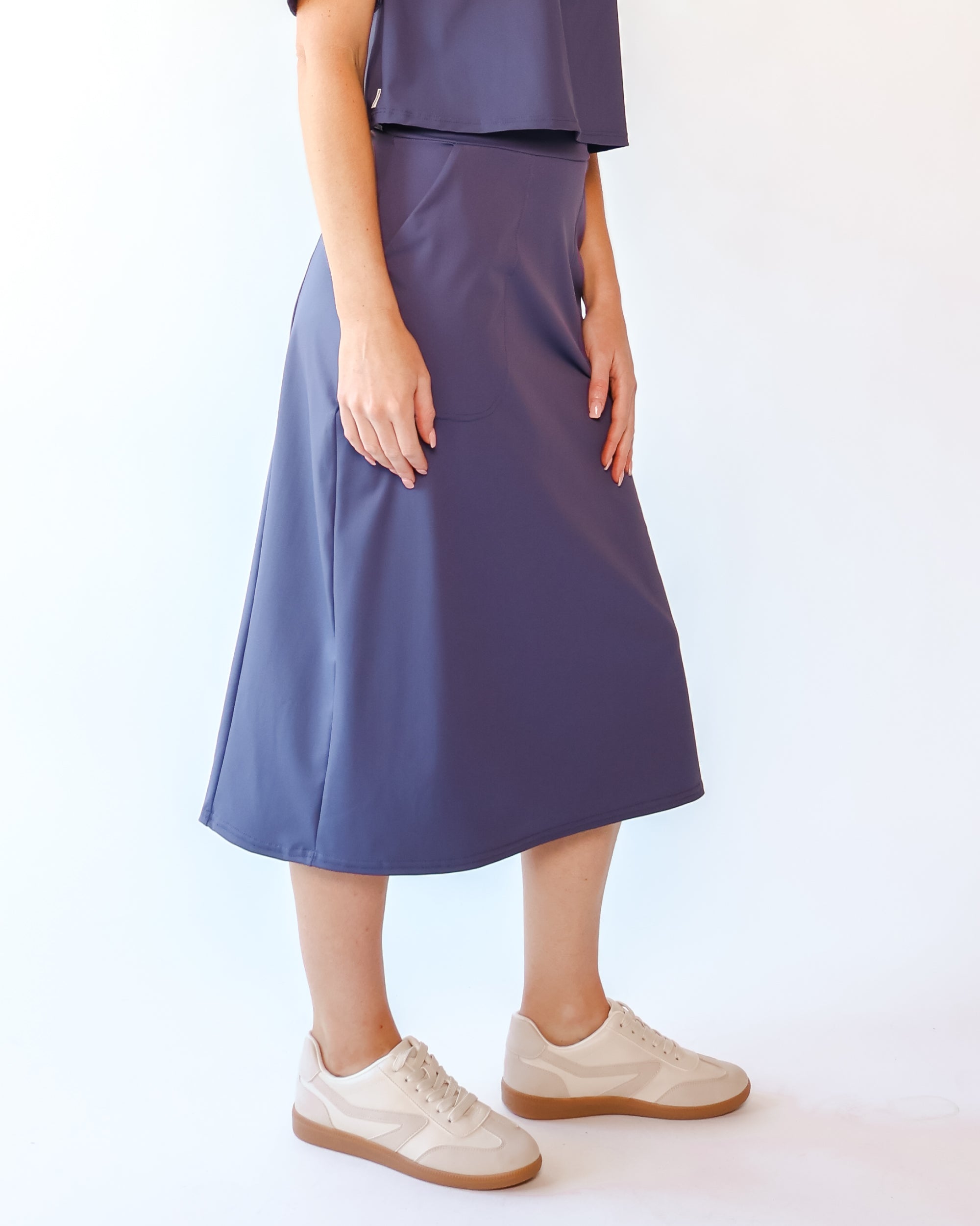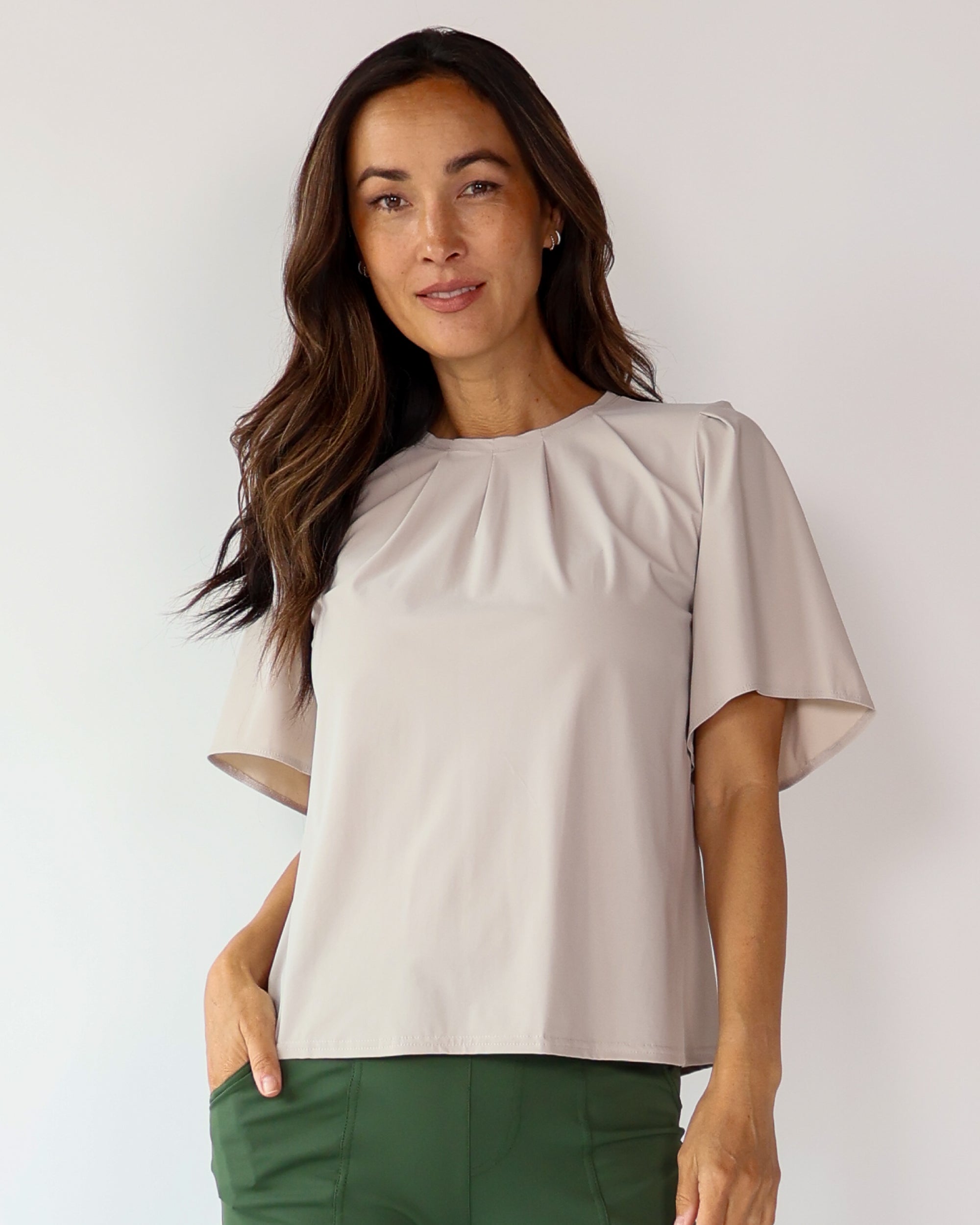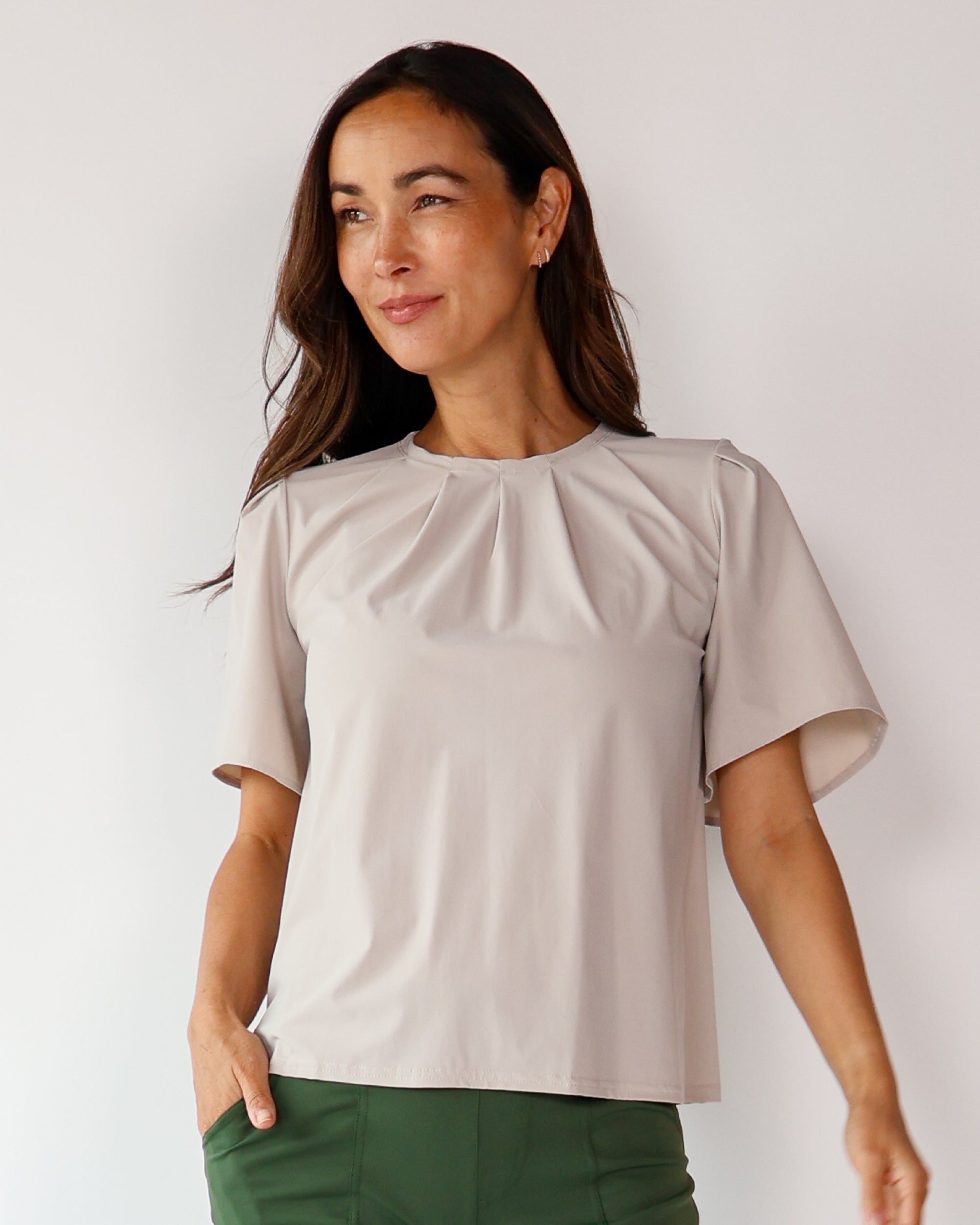 Our Ultra Soft Travel Knit has a gorgeous drape & gentle stretch, making it the ultimate choice for comfort & elegance during long trips. Developed with travelers in mind, this fabric adapts beautifully to natural body changes, so it fits just as well if you experience a slight weight fluctuation—or even while pregnant. Made from 88% recycled polyester crafted from post-consumer water bottles and blended with 12% elastane, it’s a sustainable choice that feels like a second skin. Low maintenance by design, this self-ironing material smooths wrinkles with your body heat, while its anti-microbial properties keep it fresh for multiple wears without washing.