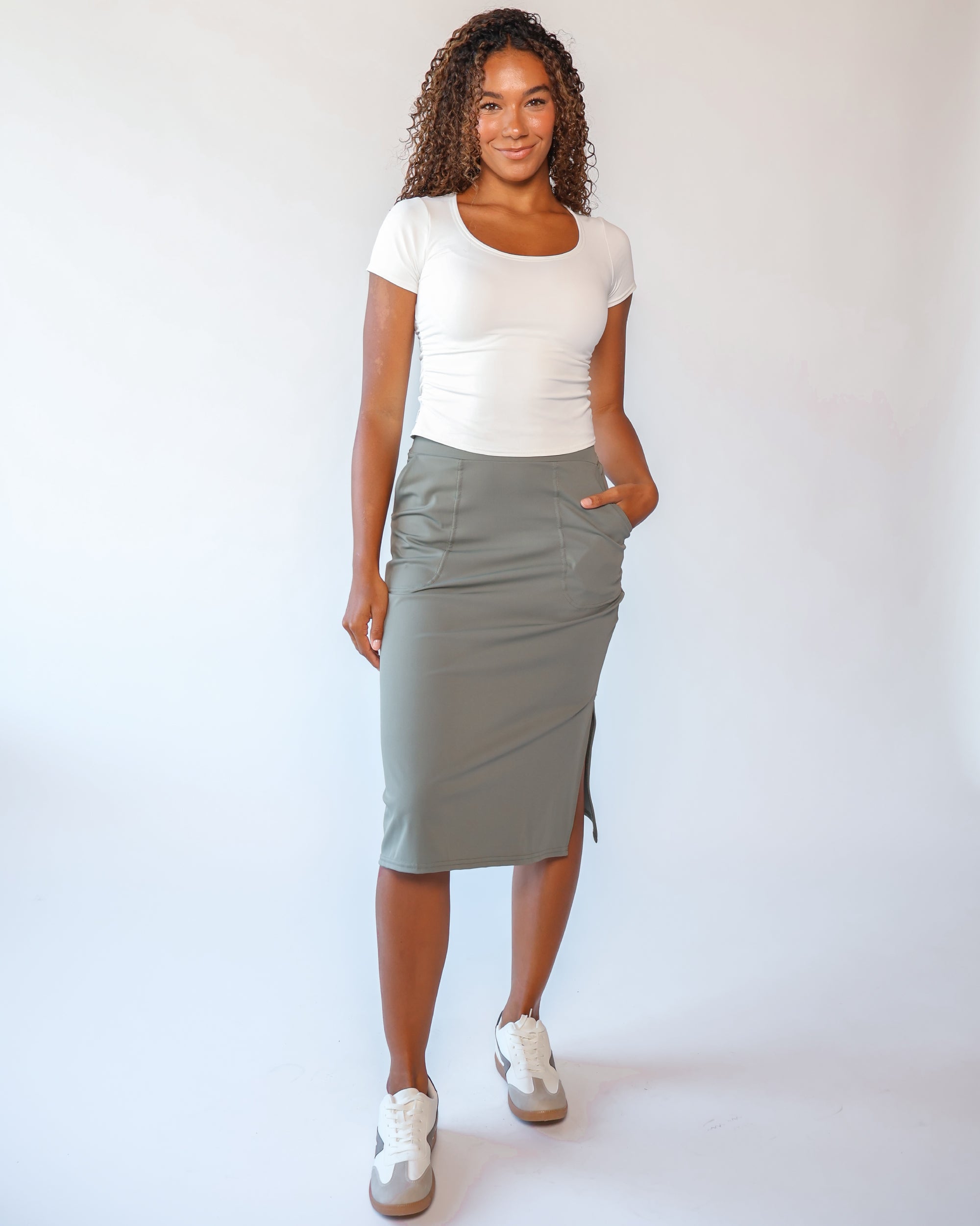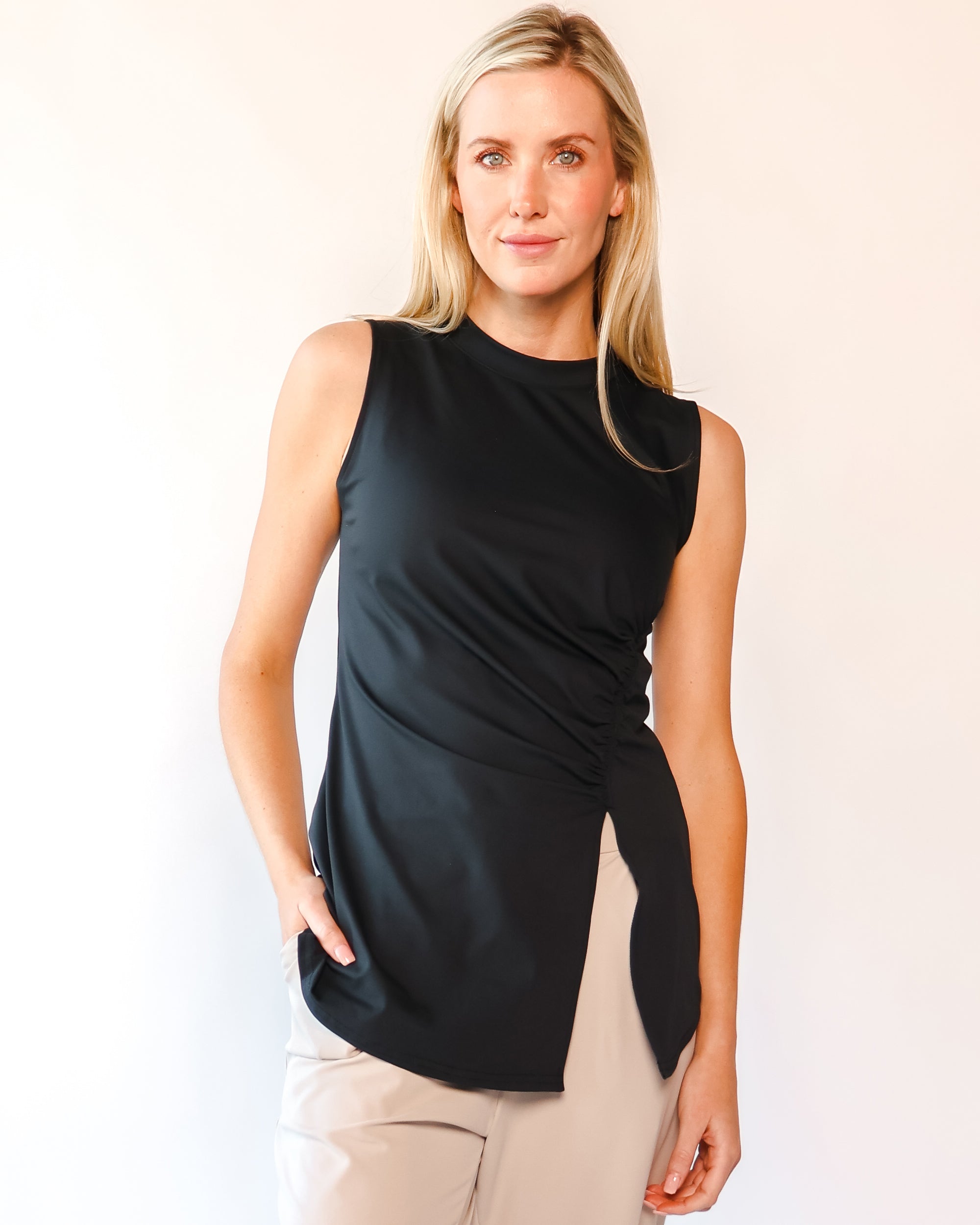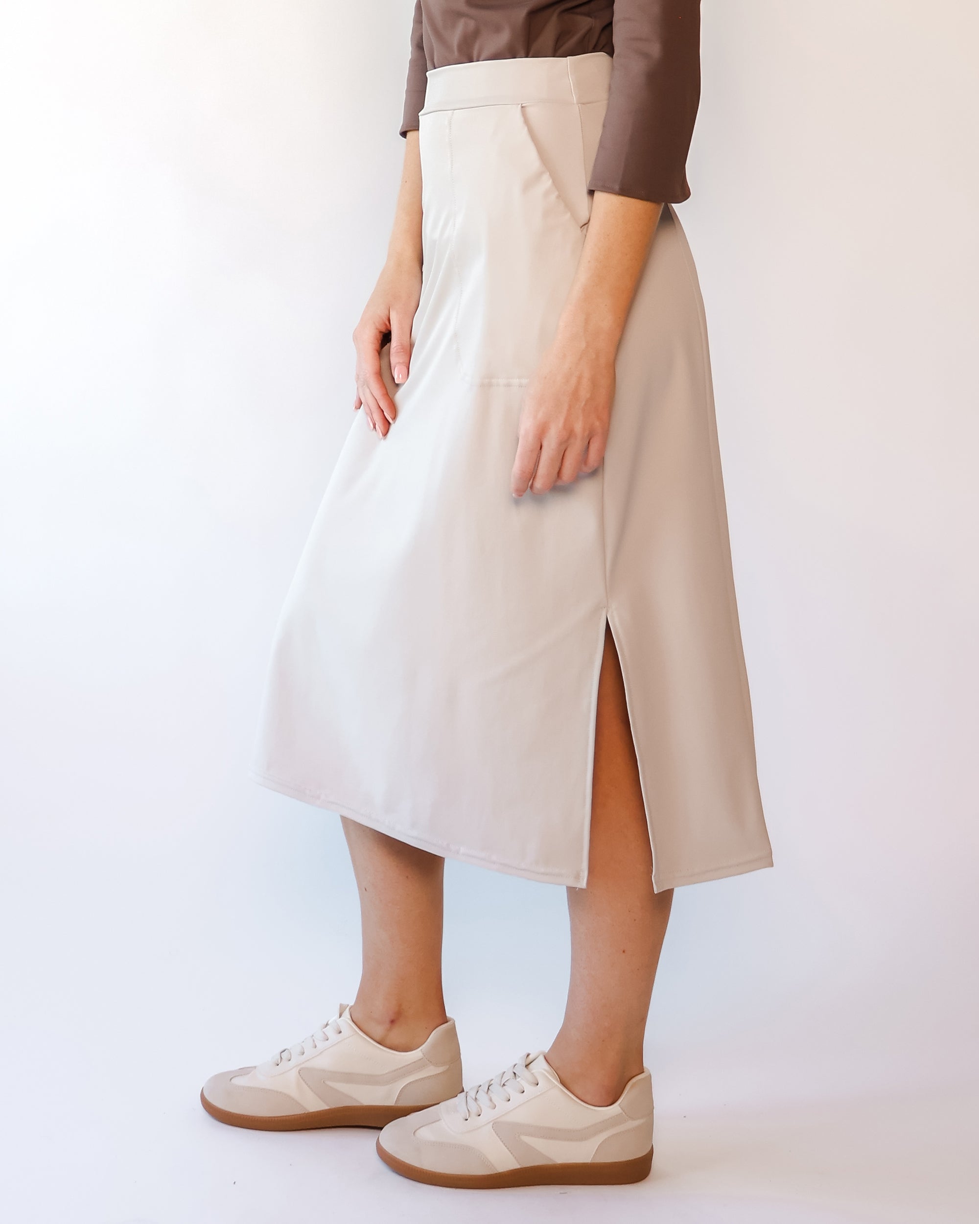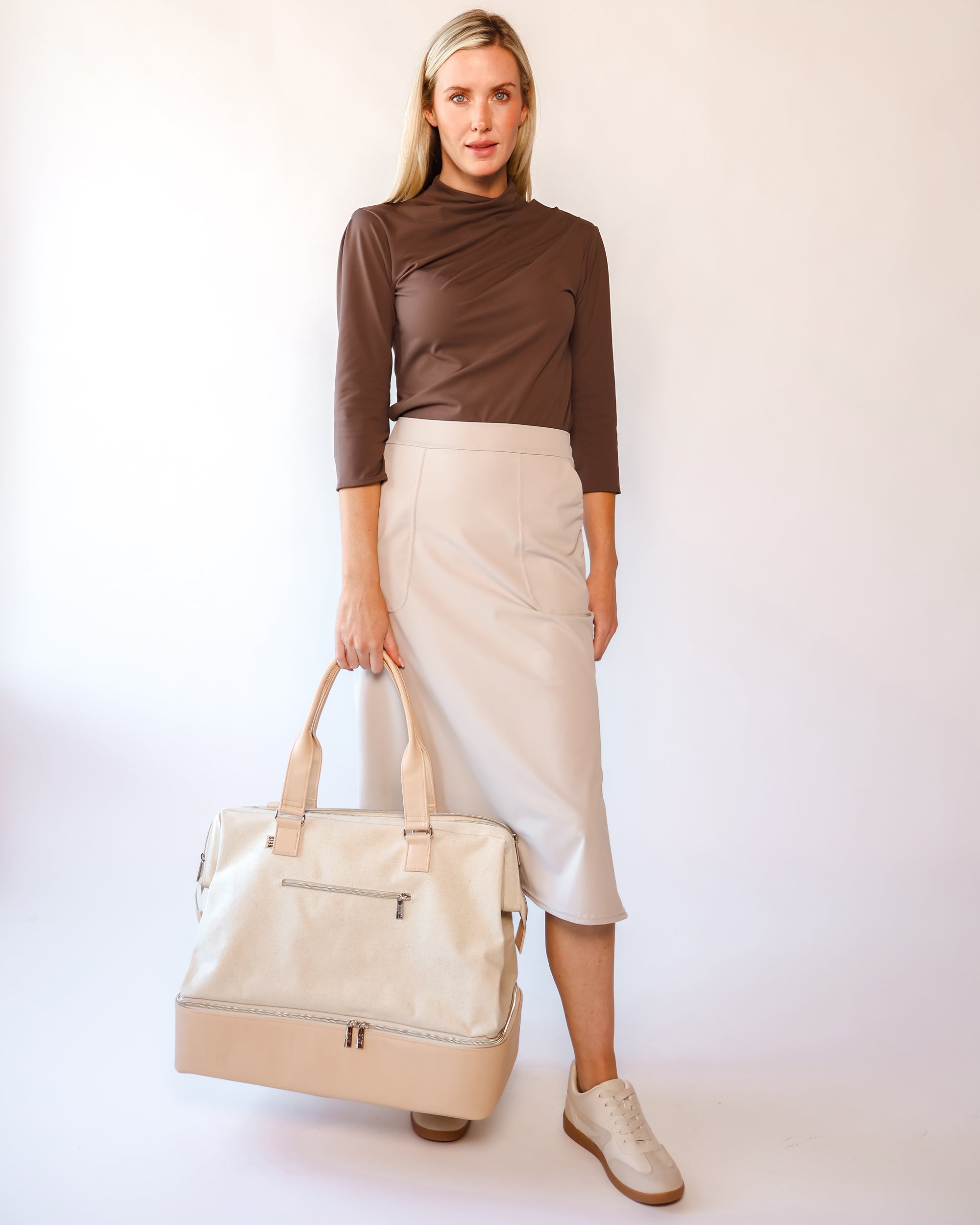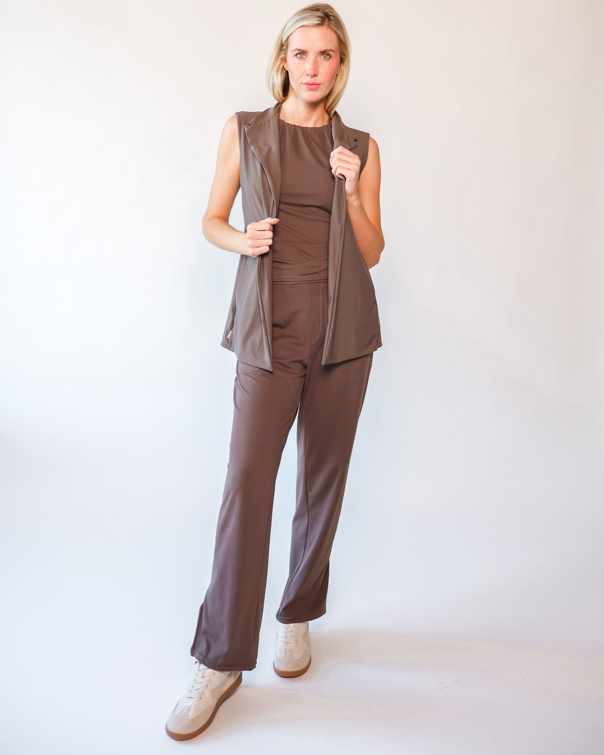 Our Ultra Soft Travel Knit has a gorgeous drape & gentle stretch, making it the ultimate choice for comfort & elegance during long trips. Developed with travelers in mind, this fabric adapts beautifully to natural body changes, so it fits just as well if you experience a slight weight fluctuation—or even while pregnant. Made from 88% recycled polyester crafted from post-consumer water bottles and blended with 12% elastane, it’s a sustainable choice that feels like a second skin. Low maintenance by design, this self-ironing material smooths wrinkles with your body heat, while its anti-microbial properties keep it fresh for multiple wears without washing.