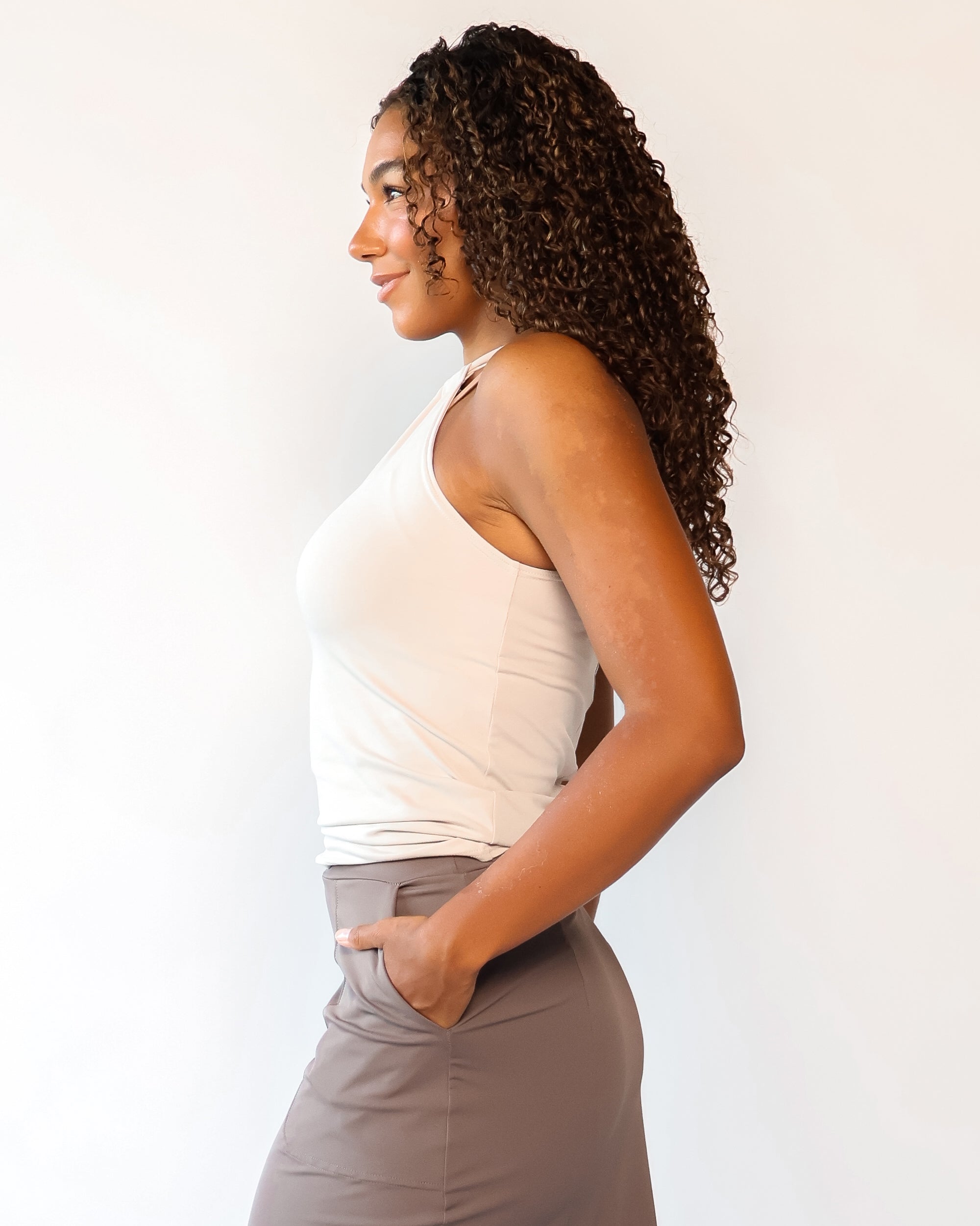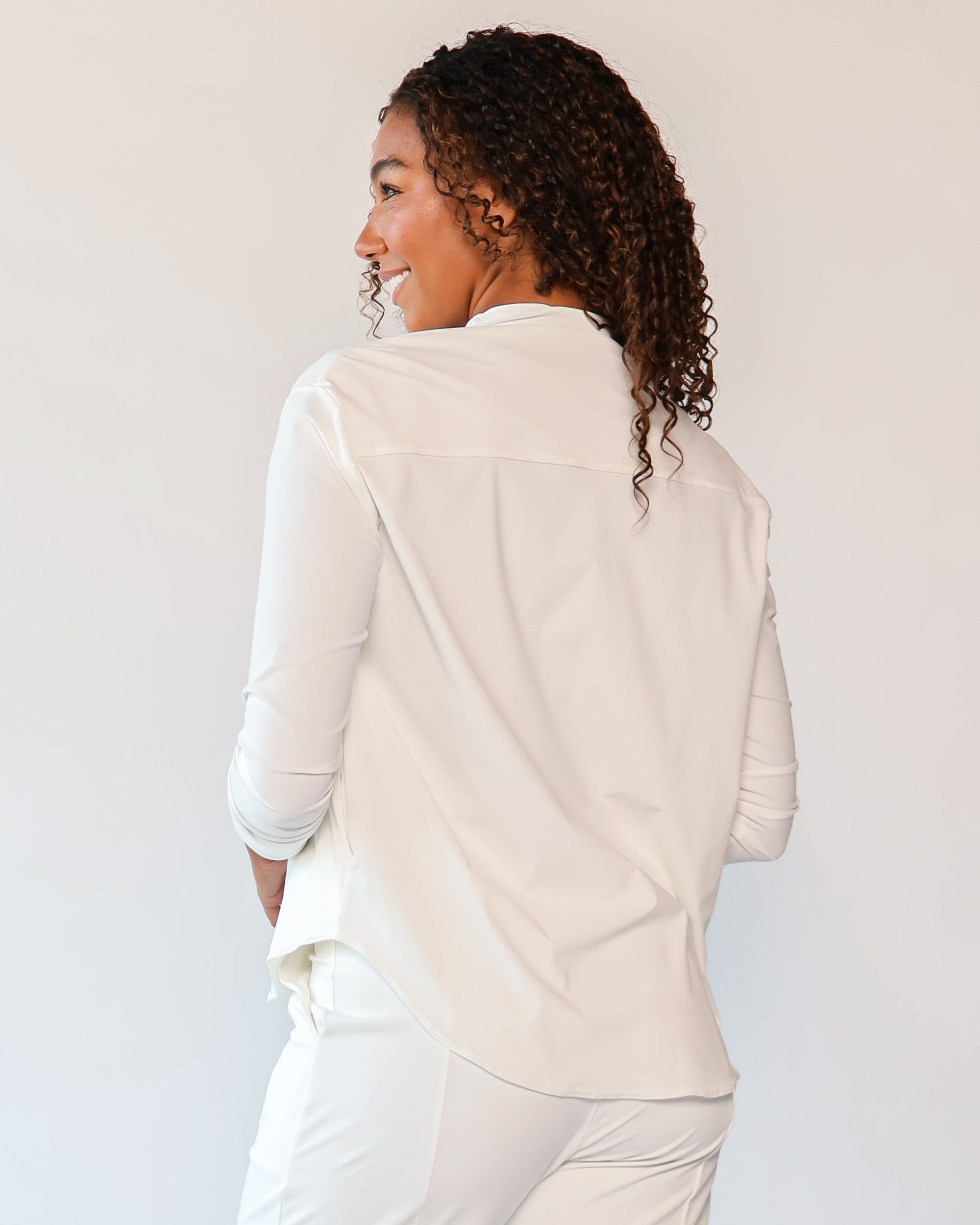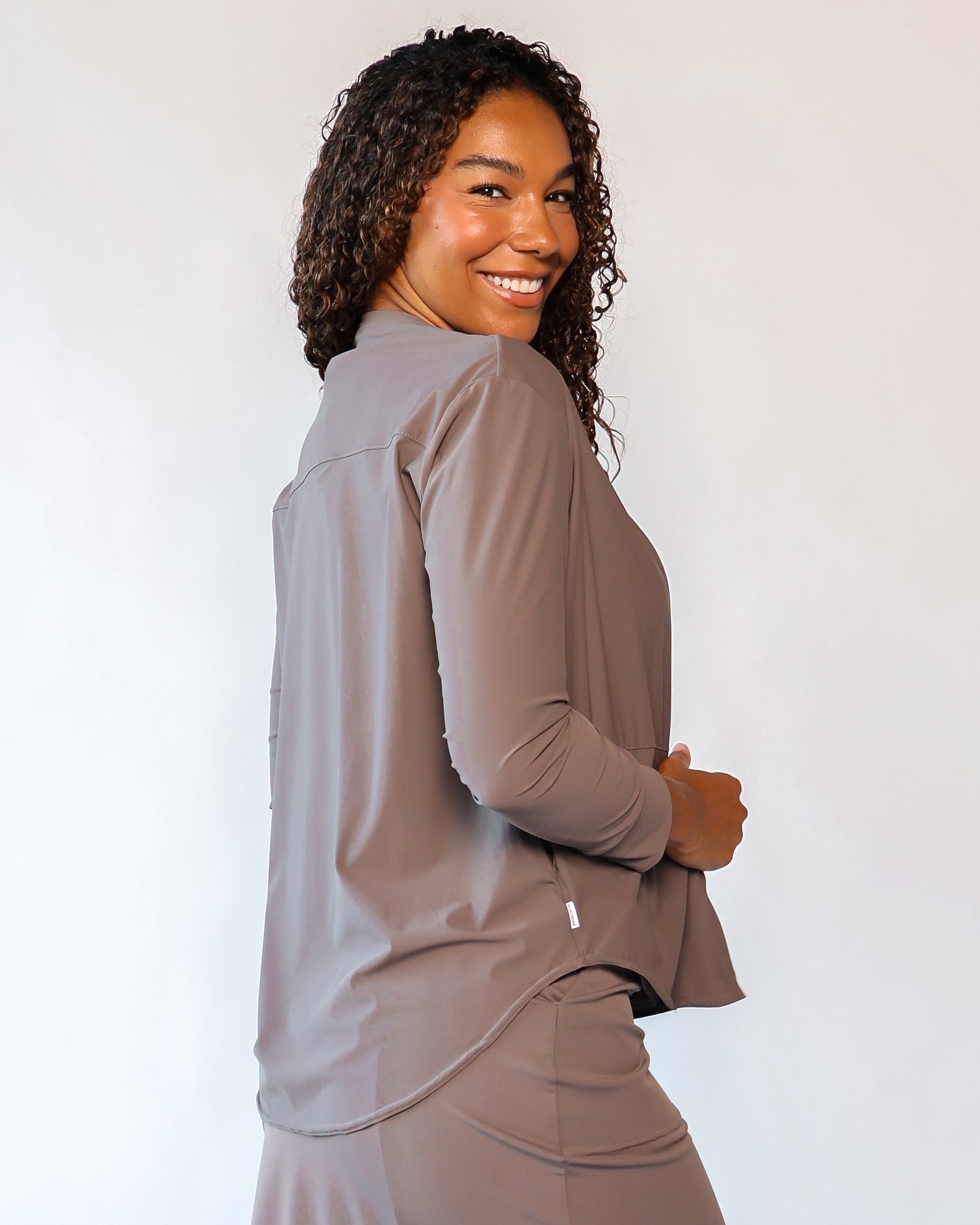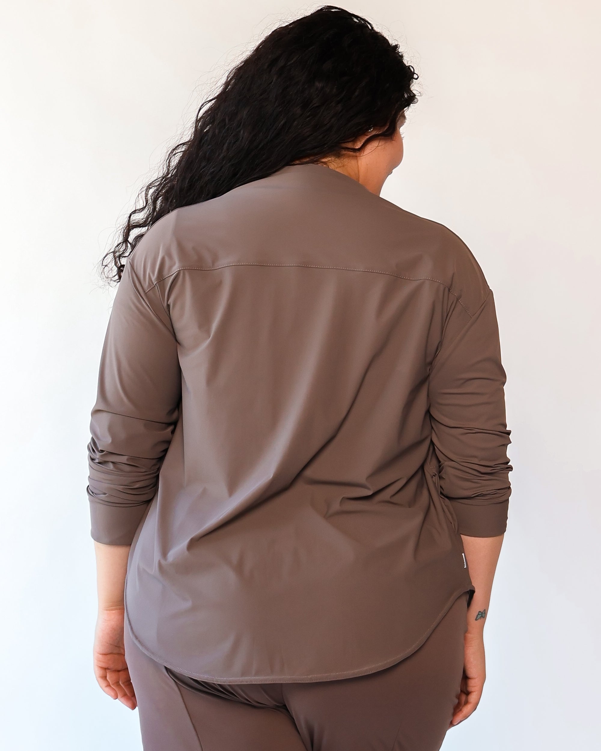 Our Lightweight Nomad Knit brings sophistication & ease to travel with its light, airy structure that drapes and moves with a graceful flow. While maintaining the structure you need, this fabric is perfect for layering and folding, making it easy to stow in a carry-on or backpack. Made from 75% recycled nylon from post-consumer water bottles and 25% elastane, it’s a conscious choice that doesn’t sacrifice comfort. The fabric’s ultra-fast drying powers, easy-clean surface, and anti-microbial properties keep it looking fresh on the go, and the faint horizontal stripe adds a hint of texture that complements any outfit.