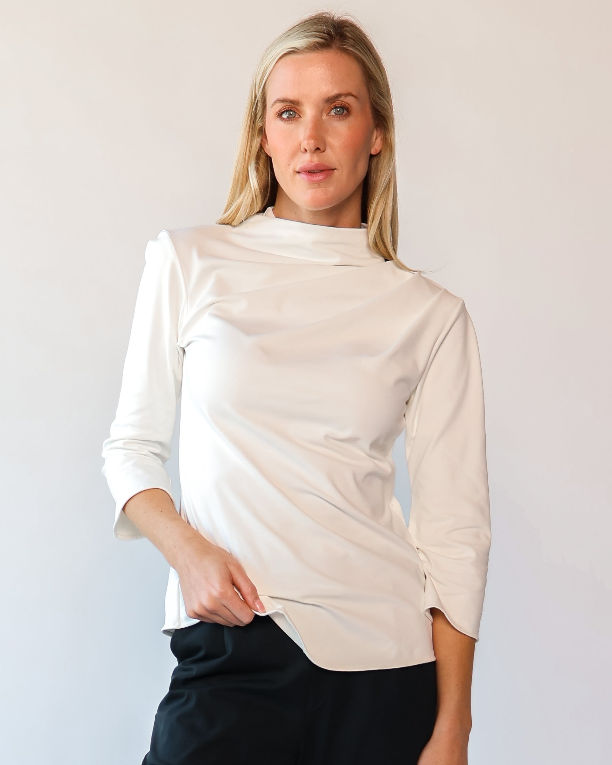 - High, Cowl Neck design. (Fitted like a turtle neck, but not choking)